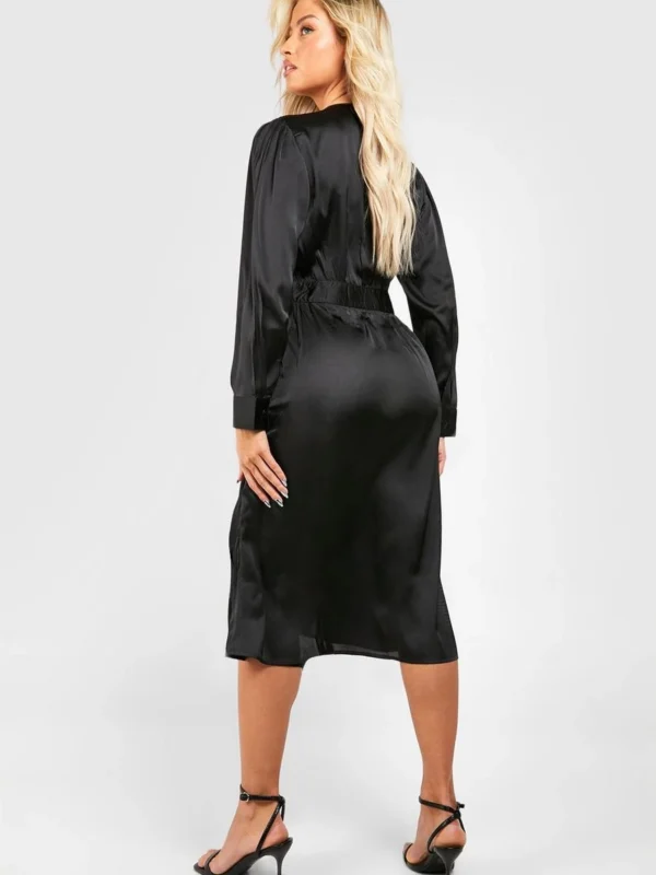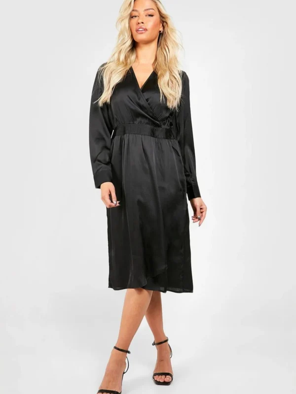 BOOHOO Satin Wrap Midi Dress