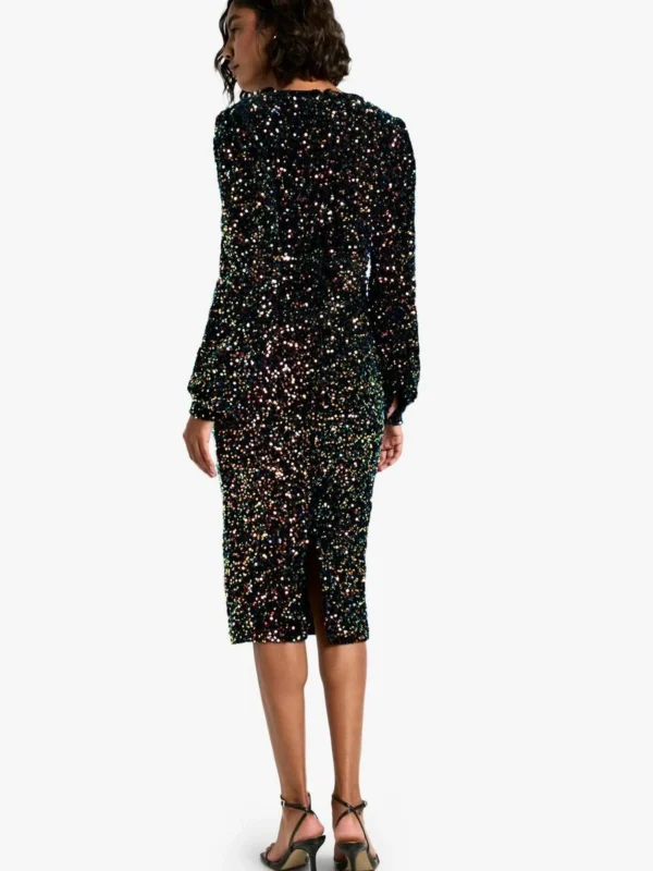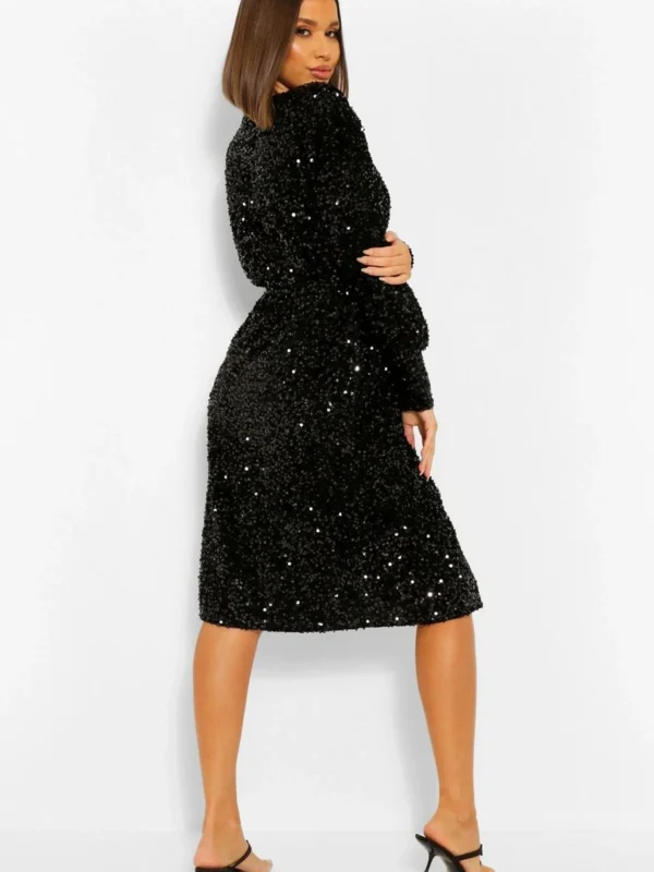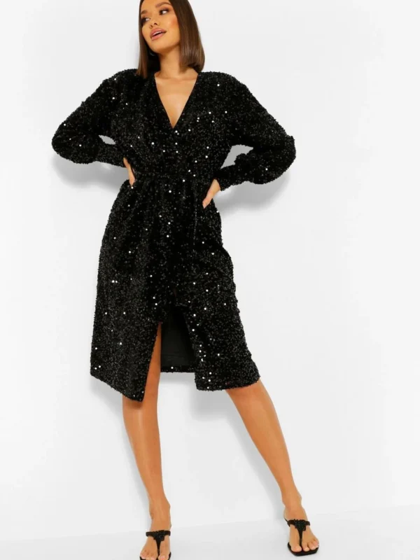 BOOHOO Sequin Long Sleeve Tie Waist Midi Party Dress