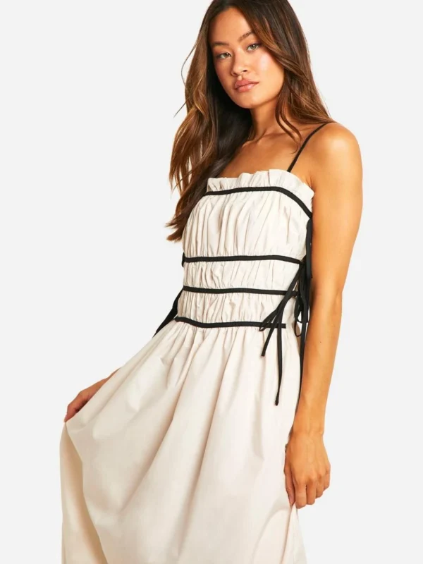 BOOHOO Tall Contrast Shirred Waist Midi Dress