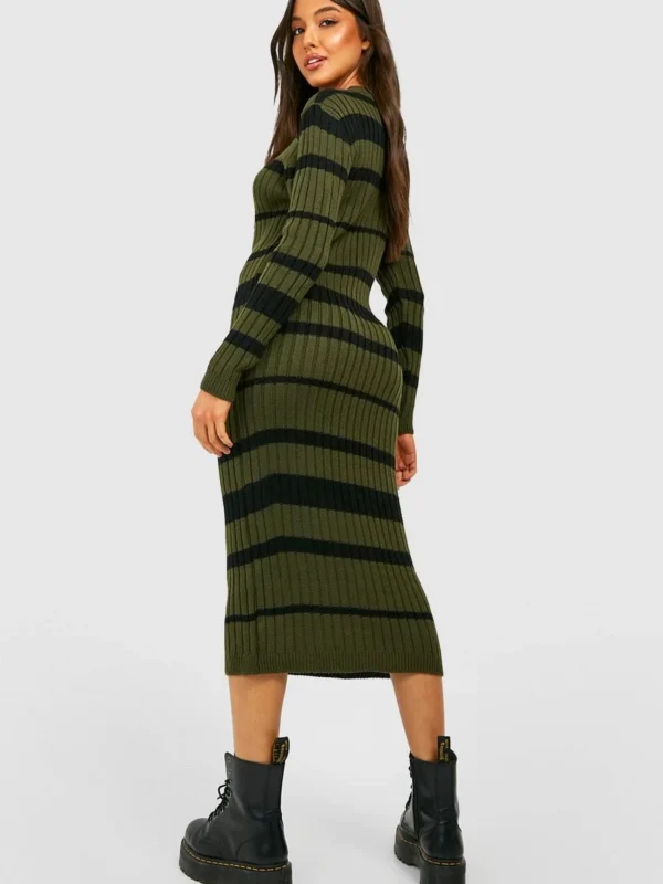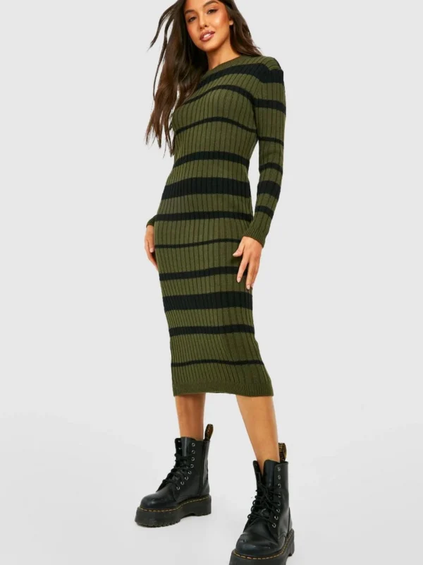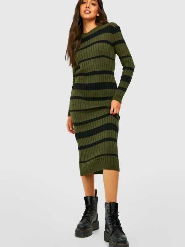 BOOHOO Stripe Knitted Midi Dress