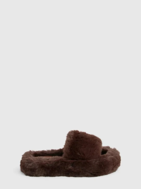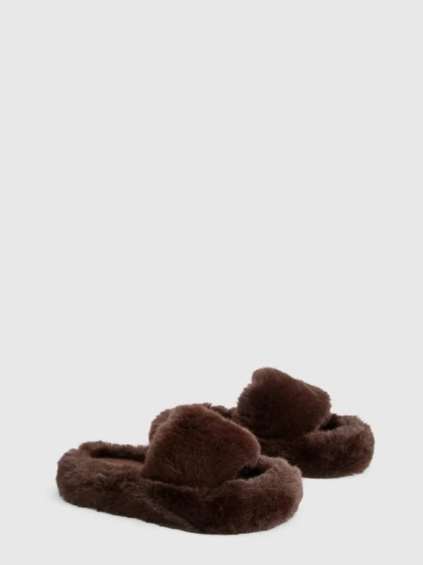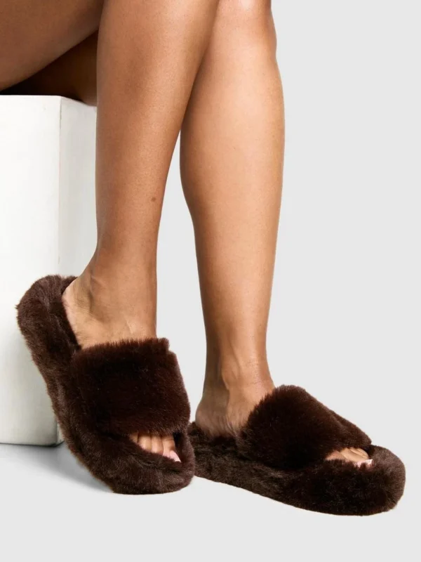 BOOHOO Fluffy Faux Fur Platform Slippers