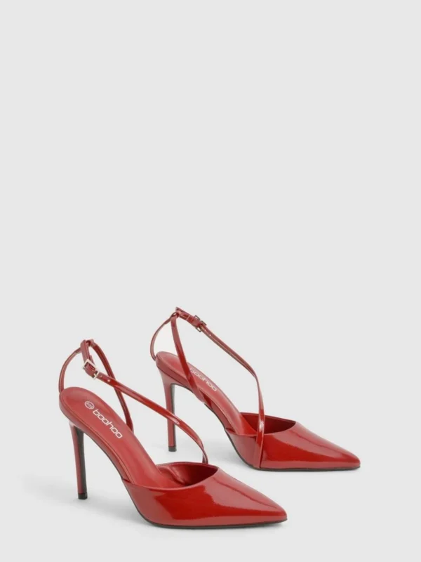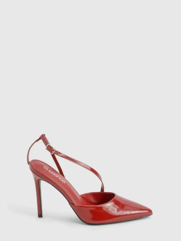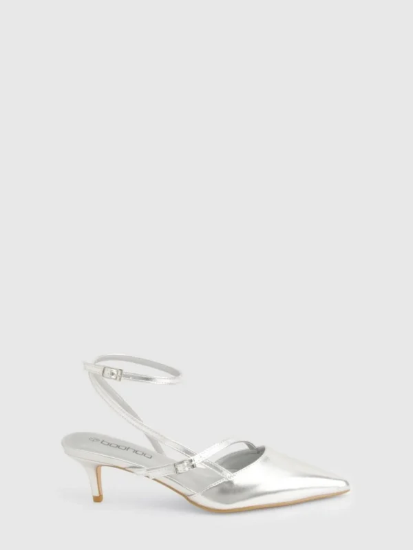 BOOHOO Asymmetric Buckle Strap Kitten Heel Court Shoes