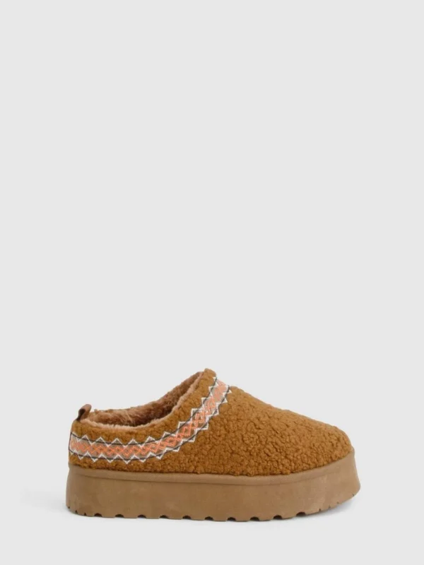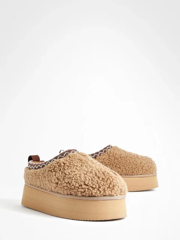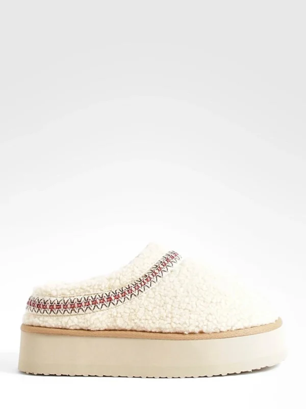 BOOHOO Borg Embroidered Cosy Platform Slip On Mules