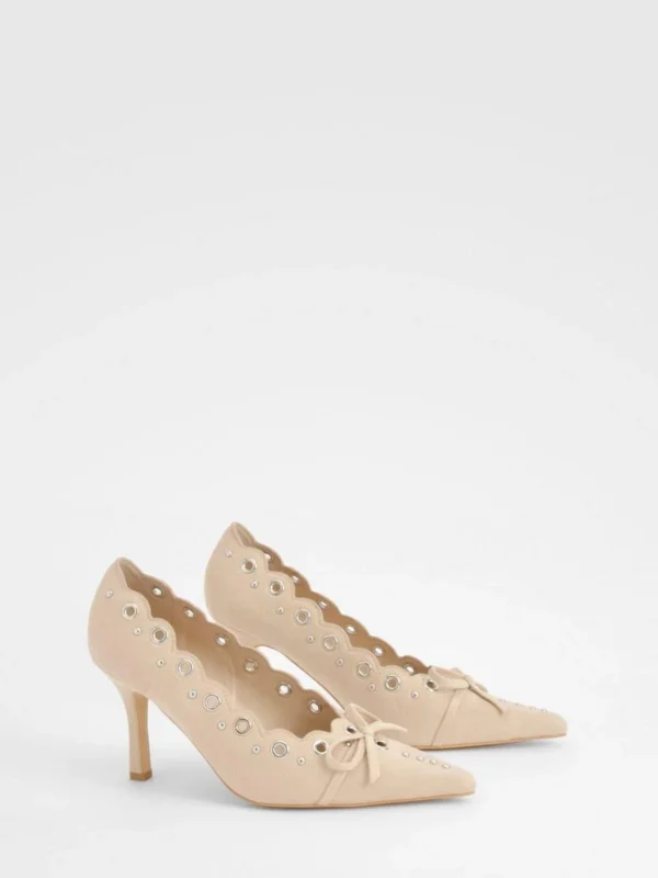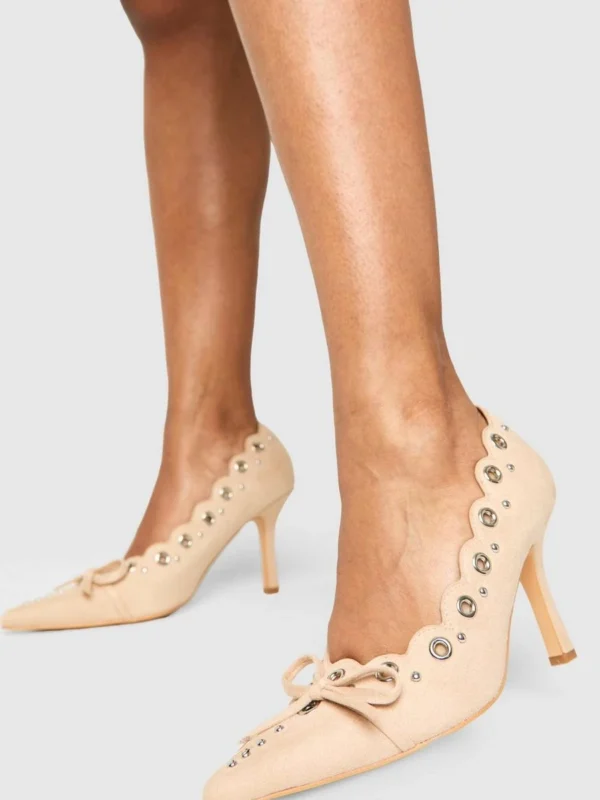BOOHOO Bow Detail Ankle Strap Pointed Flats