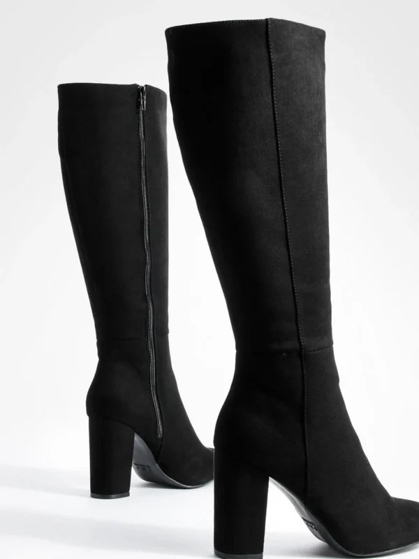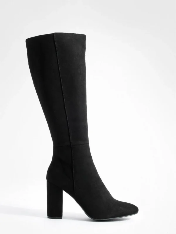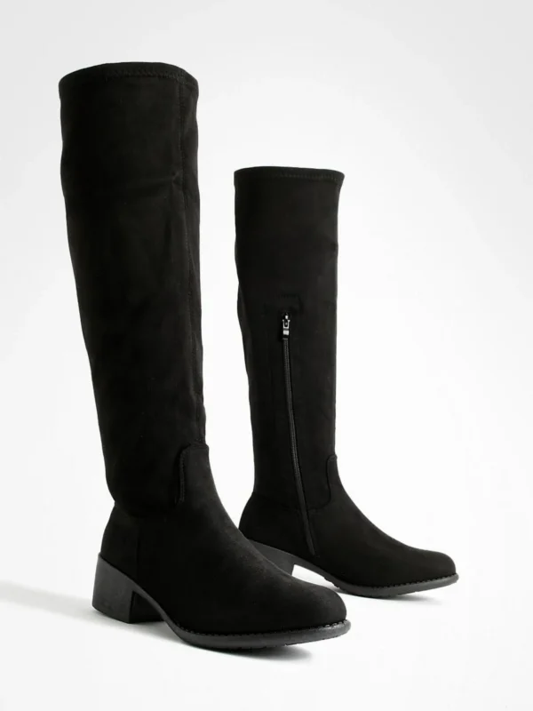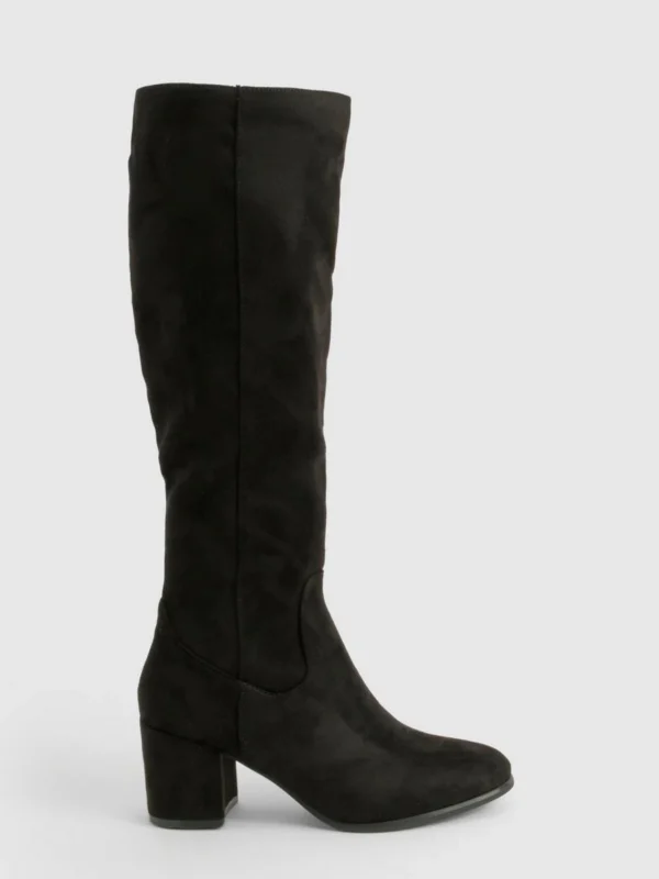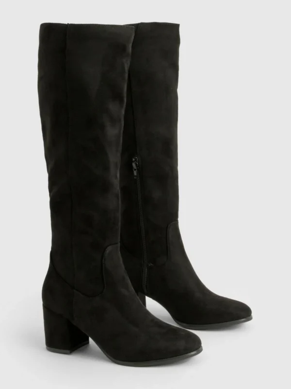 BOOHOO Faux Suede Low Block Pull On Knee High Boots