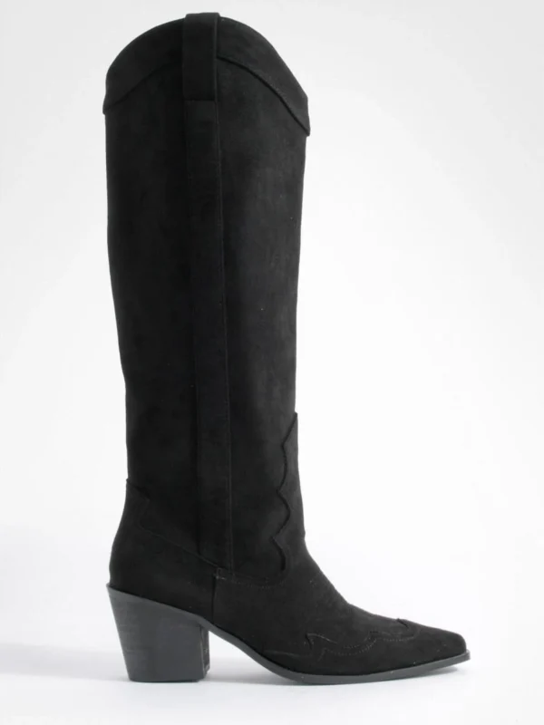 BOOHOO Faux Suede Knee High Heeled Western Cowboy Boots
