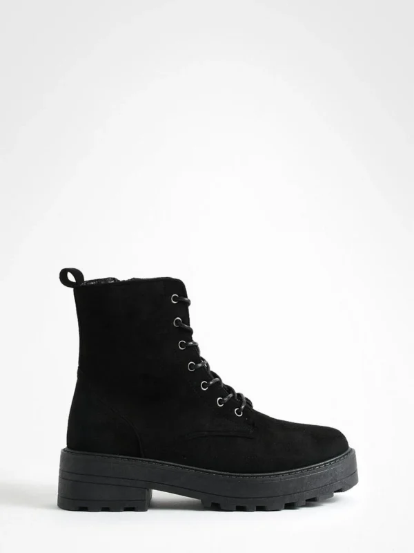 BOOHOO Faux Suede Lace Up Chunky Hiker Boots