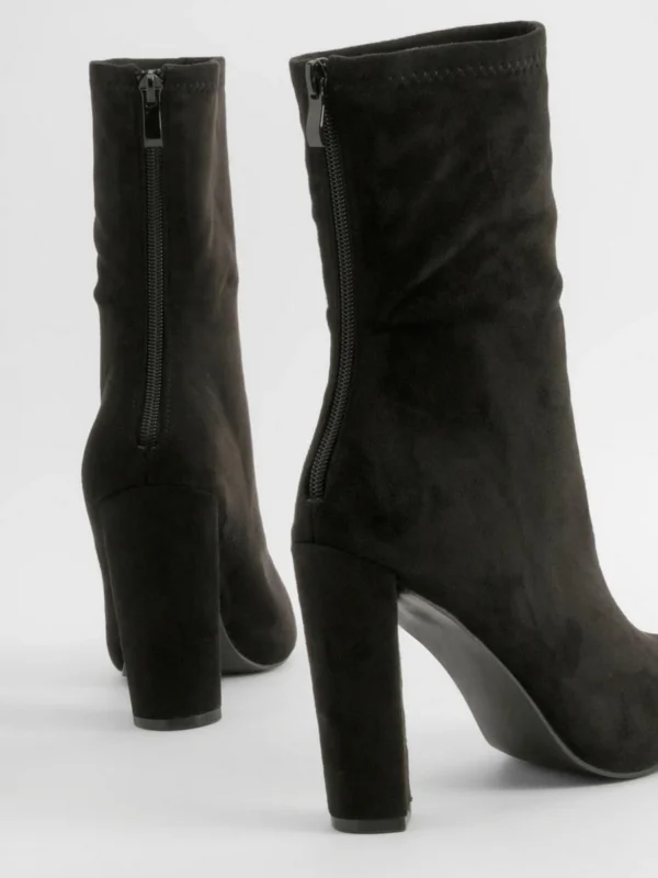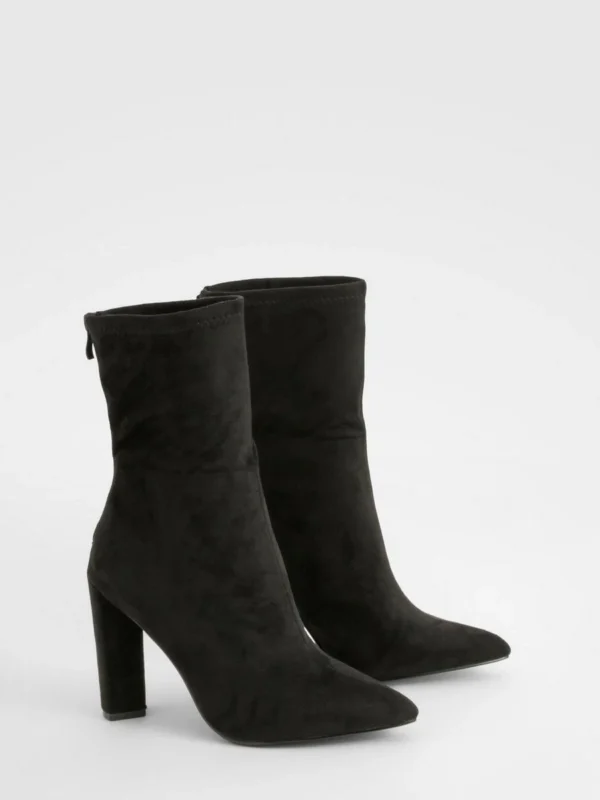 BOOHOO Faux Suede Pointed Block Heel Sock Boots