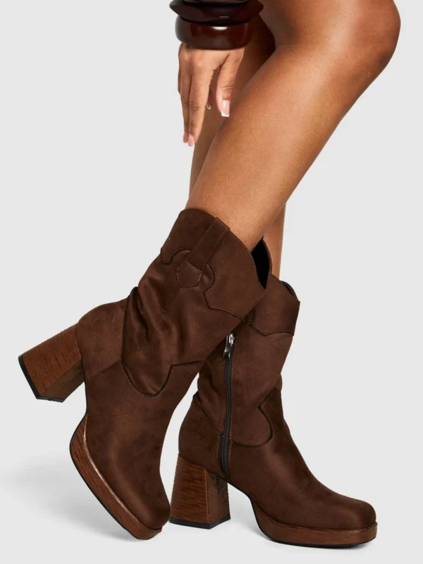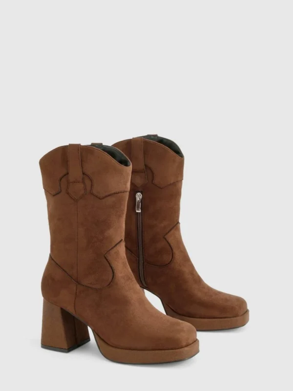 BOOHOO Faux Suede Platform Wooden Heel Detail Ankle Boot