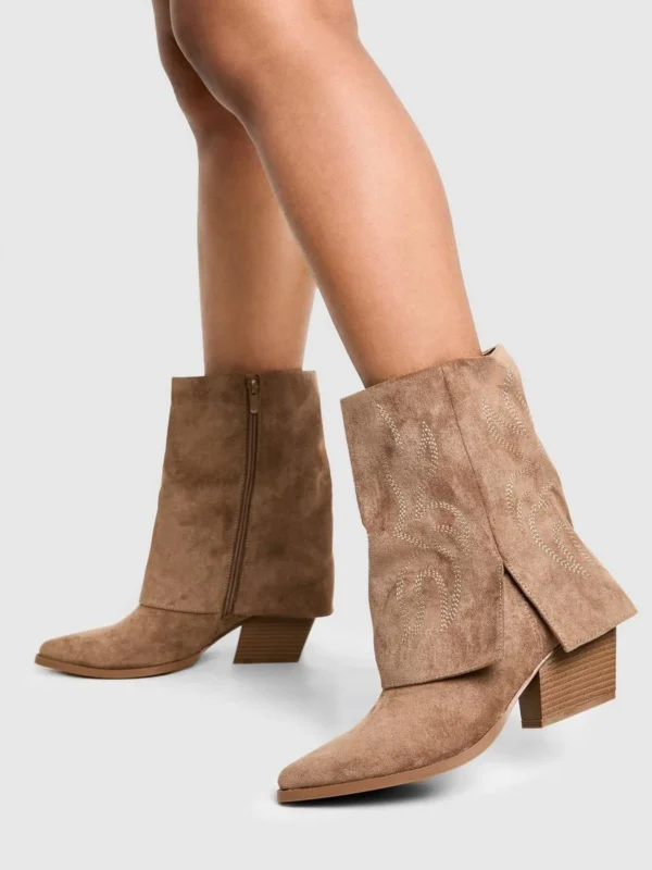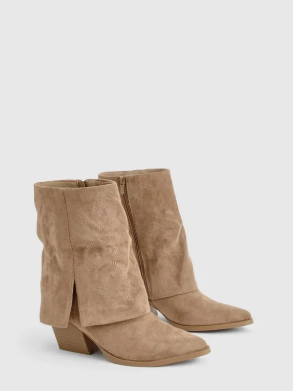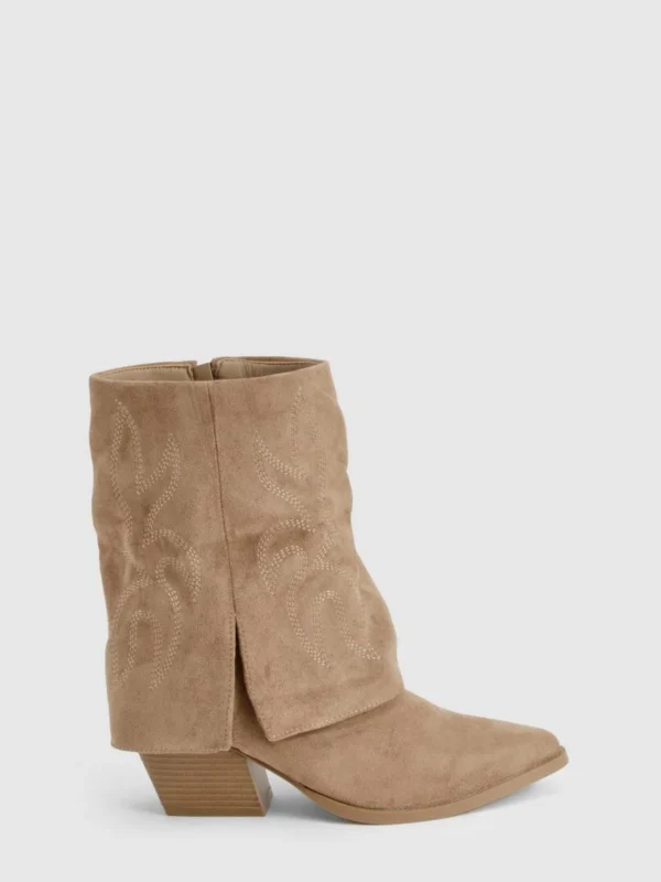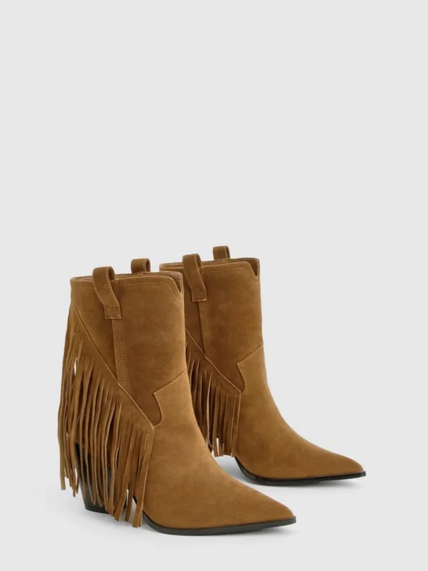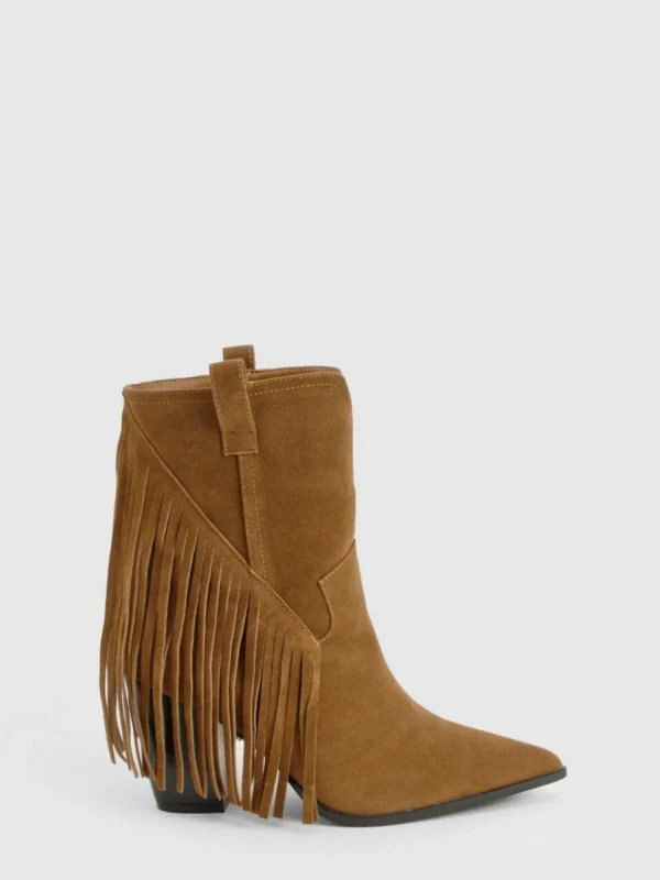 BOOHOO Faux Suede Fringe Tassel Detail Heeled Western Ankle Boot