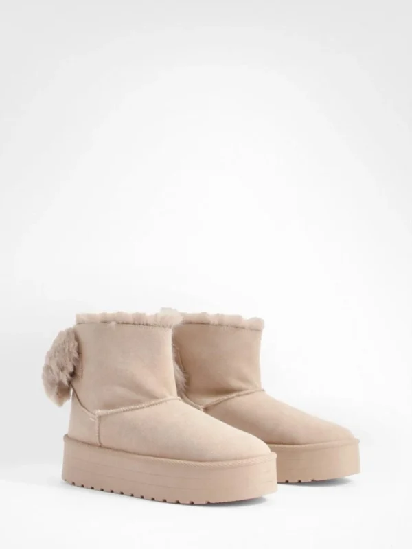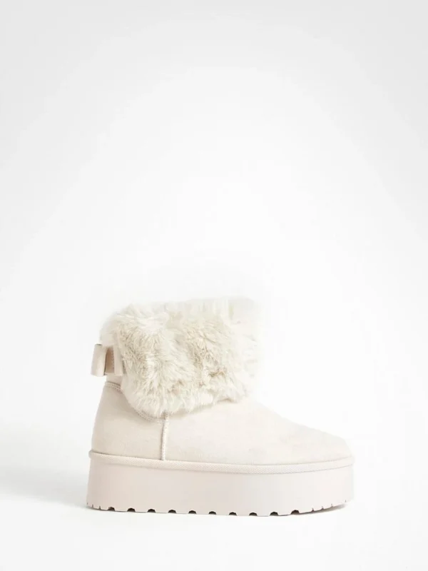 BOOHOO Fur Trim Platform Mini Cosy Boots