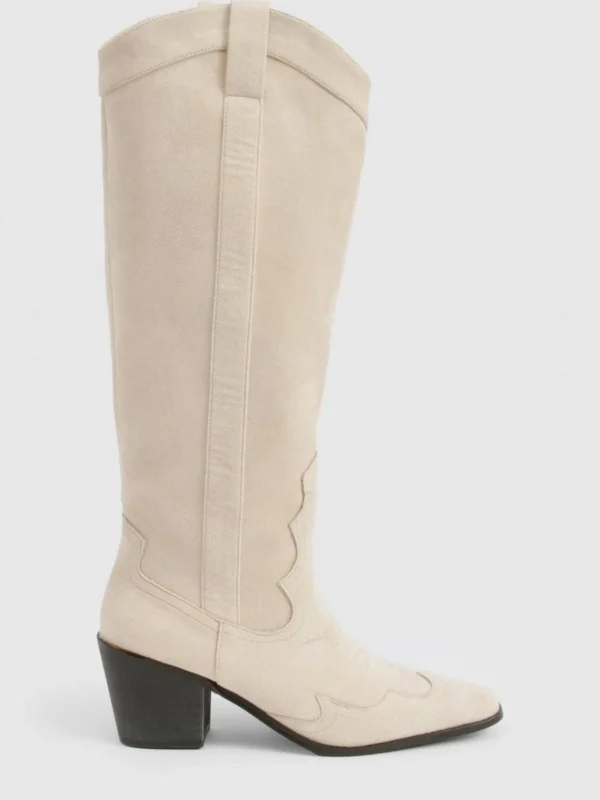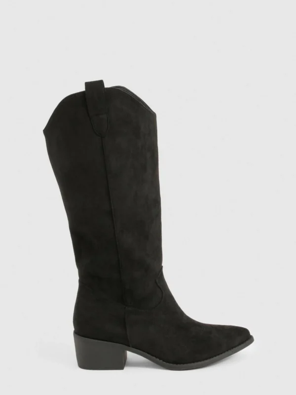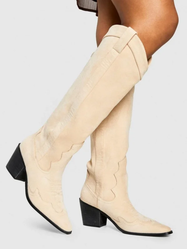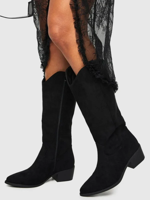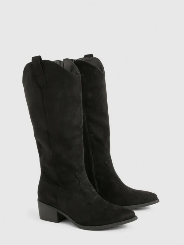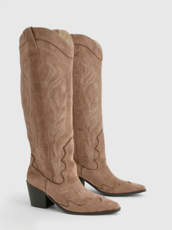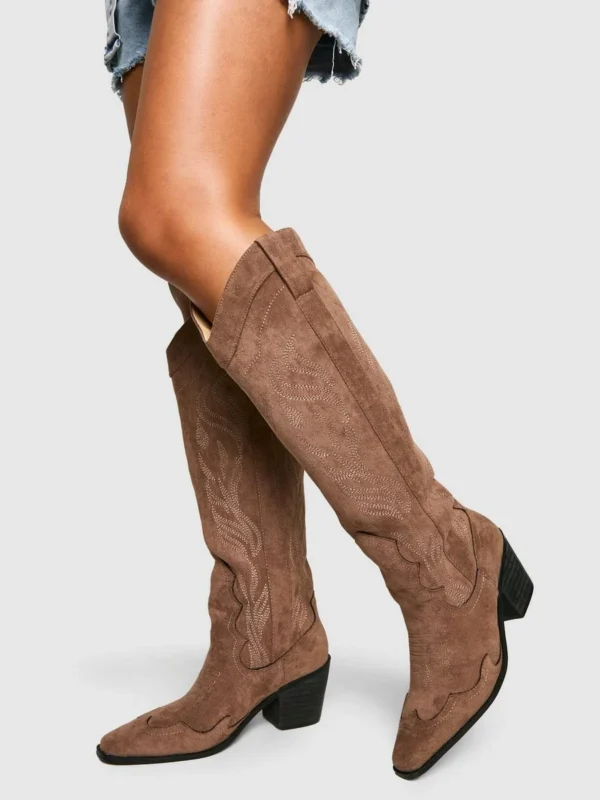 BOOHOO Knee High Heeled Faux Suede Western Cowboy Boots