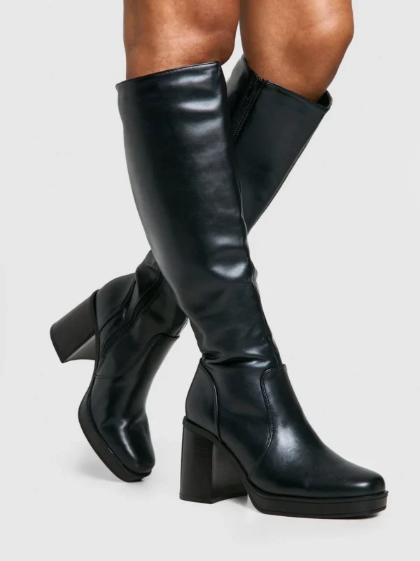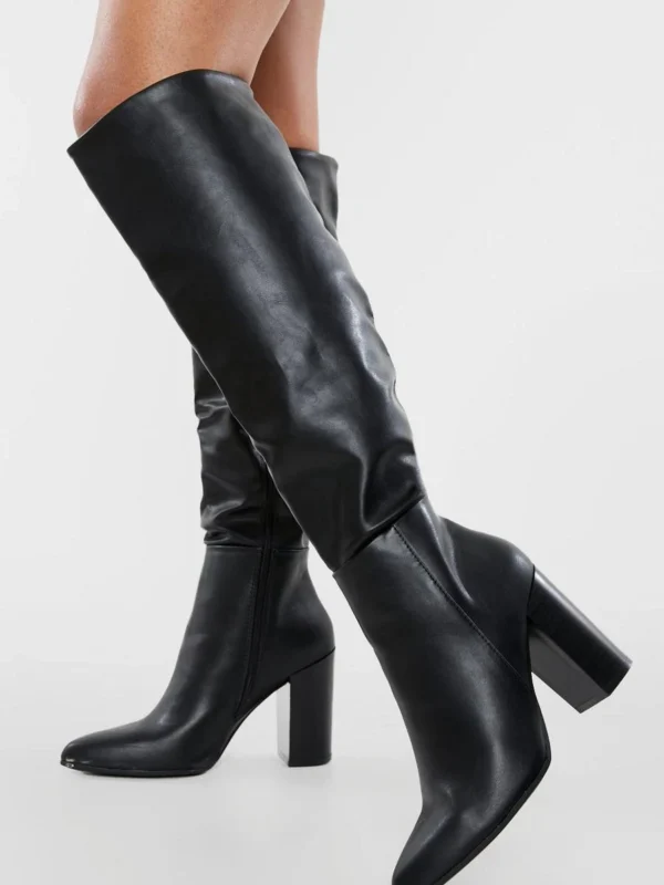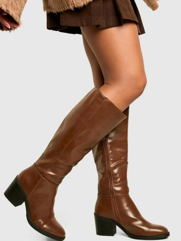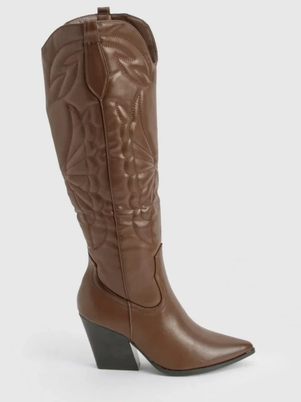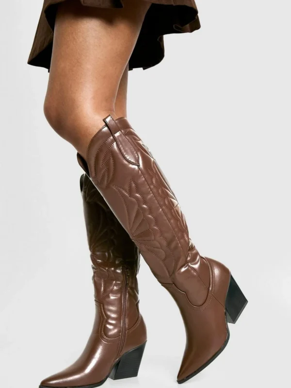 BOOHOO Knee High Heeled Western Cowboy Boots