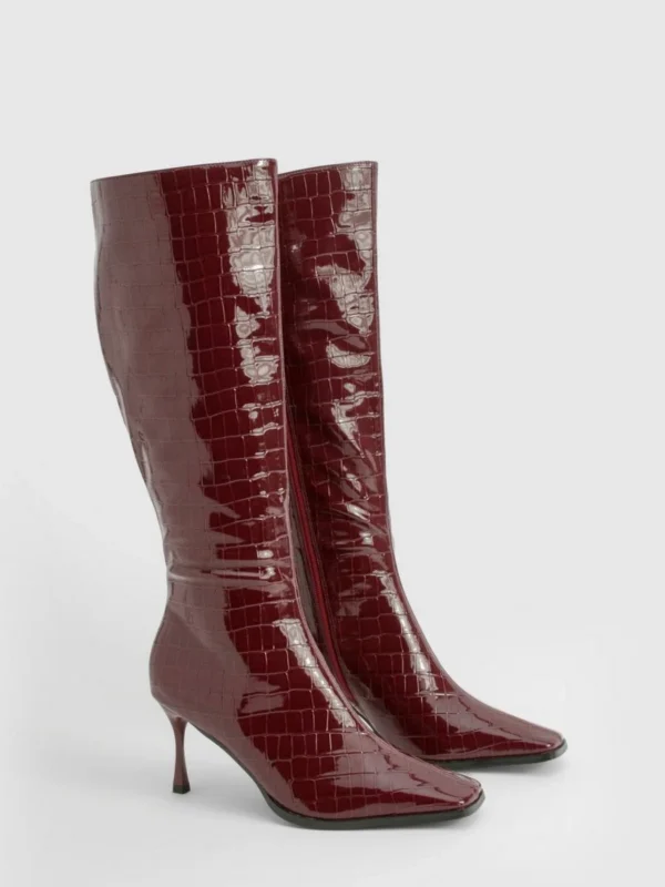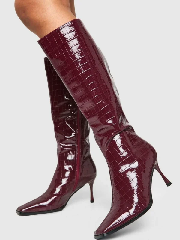 BOOHOO High Shine Croc Pointed Toe Heeled Boots