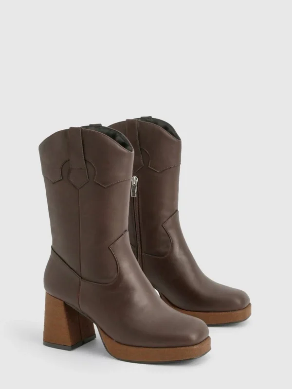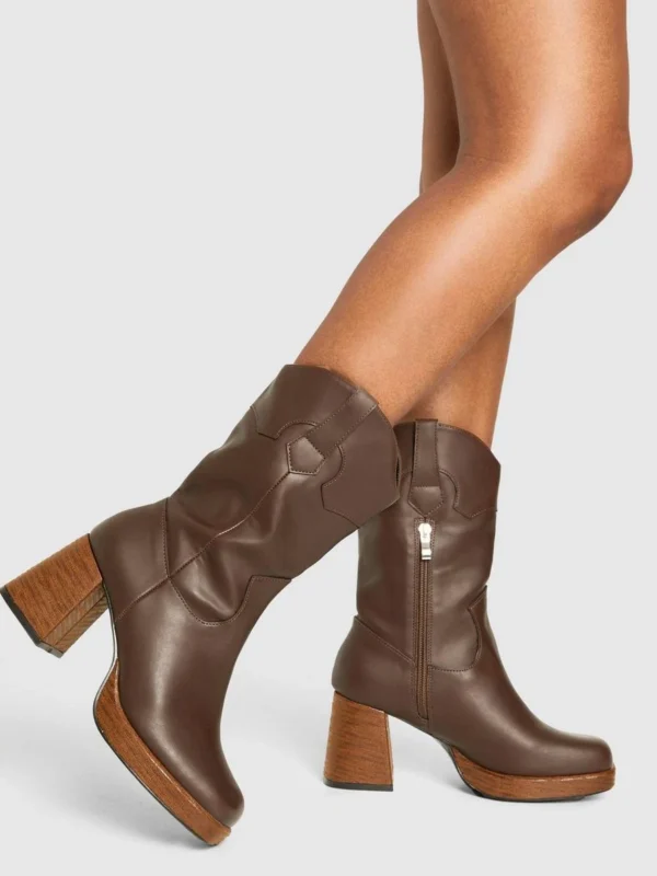 BOOHOO Platform Wooden Heel Detail Ankle Boot