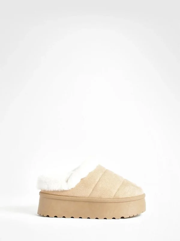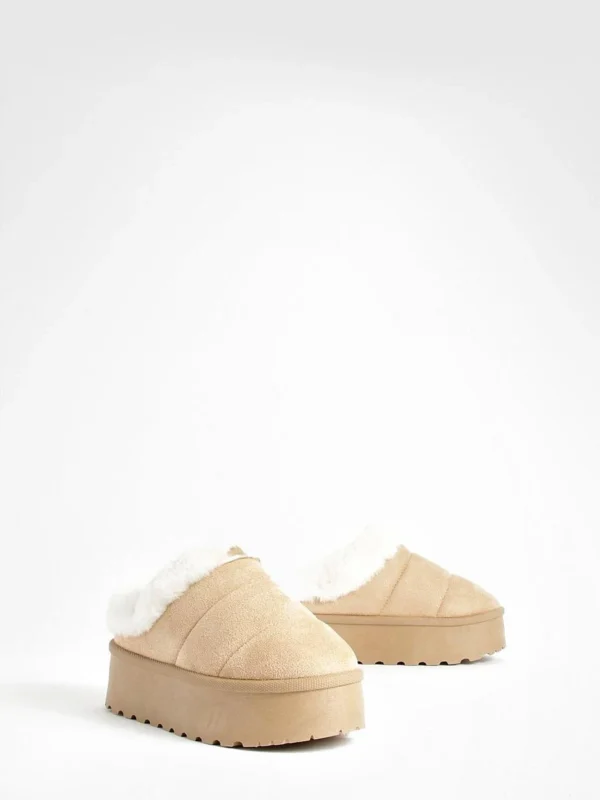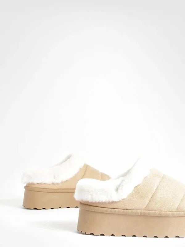 BOOHOO Platform Fur Lined Cosy Mules