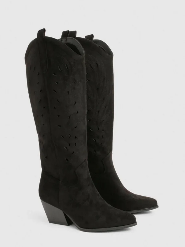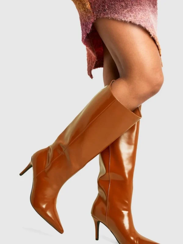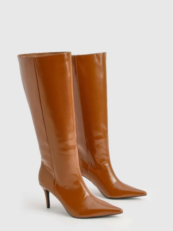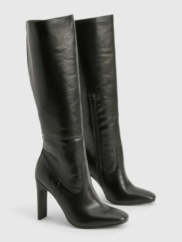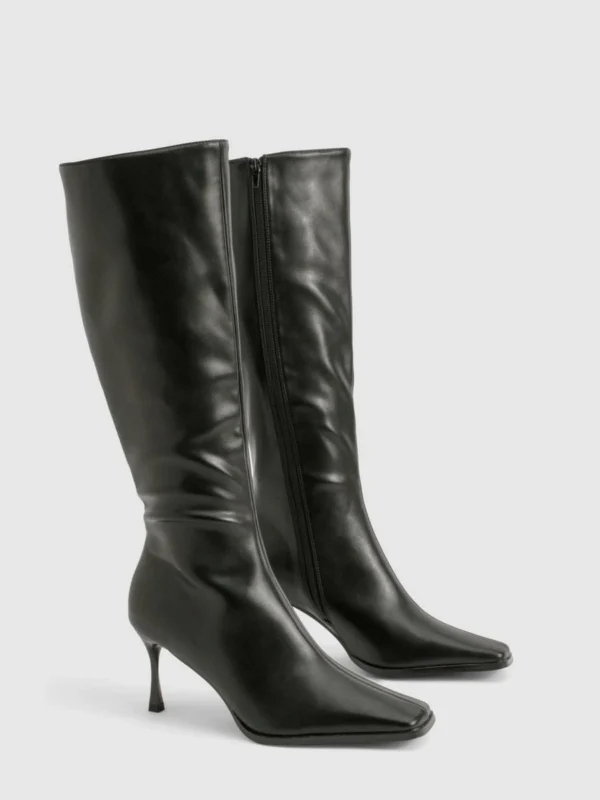 BOOHOO Pointed Toe Heeled Knee High Boots