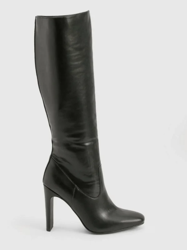 BOOHOO Premium Leather Look Pointed Knee High Boots