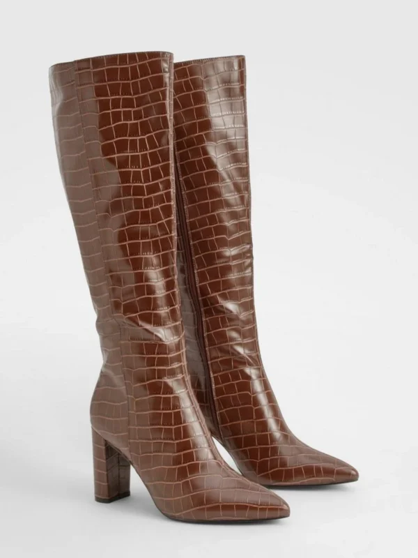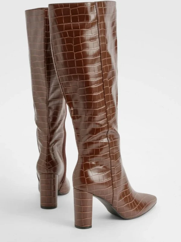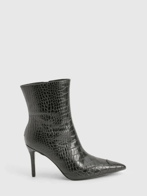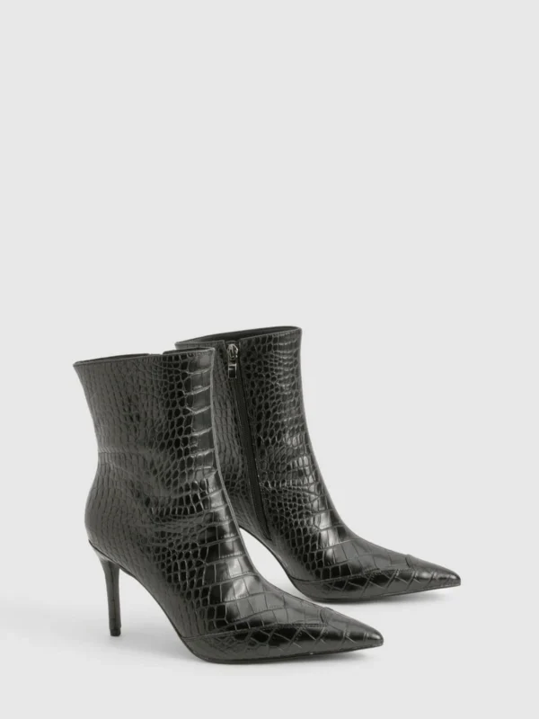 BOOHOO Pointed Toe Croc Detail Heeled Ankle Boot