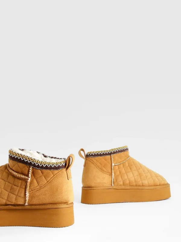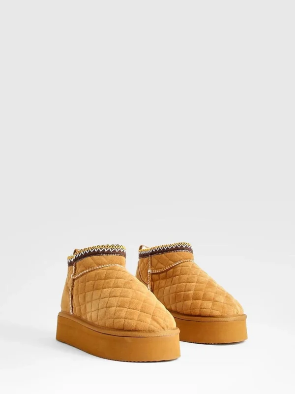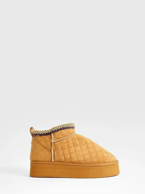BOOHOO Quilted Ultra Mini Platform Cosy Boots