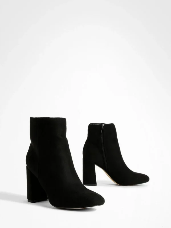 BOOHOO Round Toe Block Heel Faux Suede Ankle Boots
