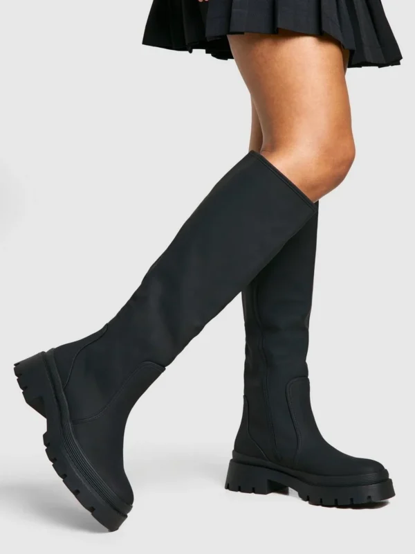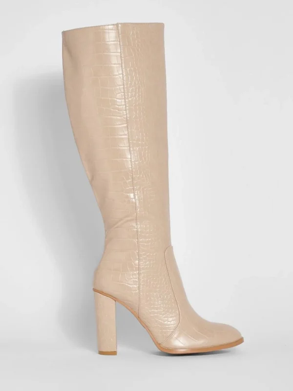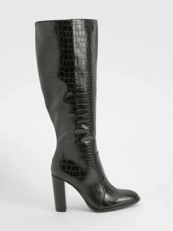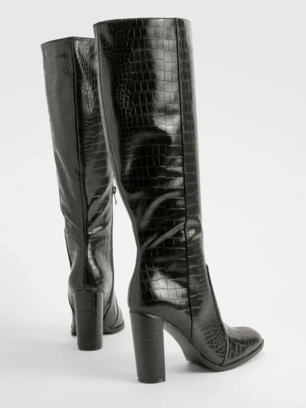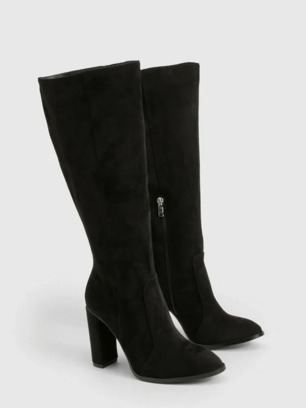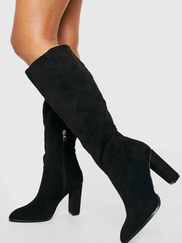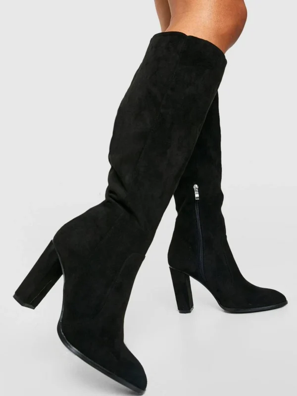 BOOHOO Round Toe Wooden Stack Heel Detail Knee High Boots
