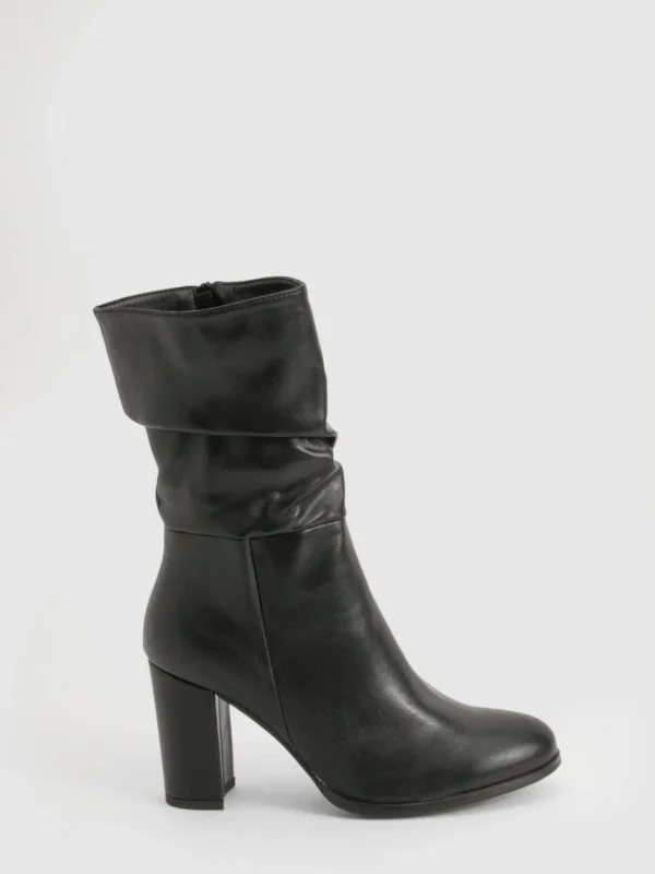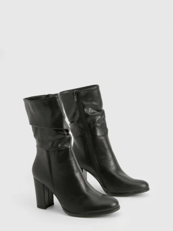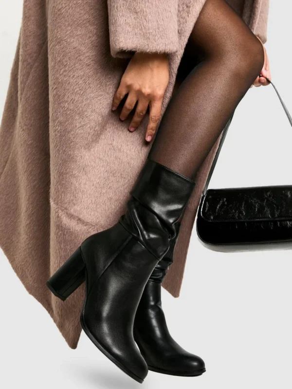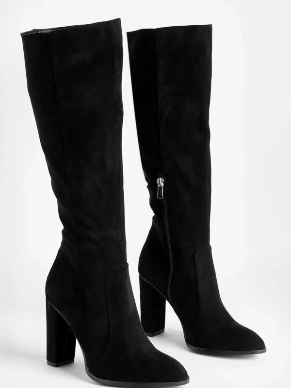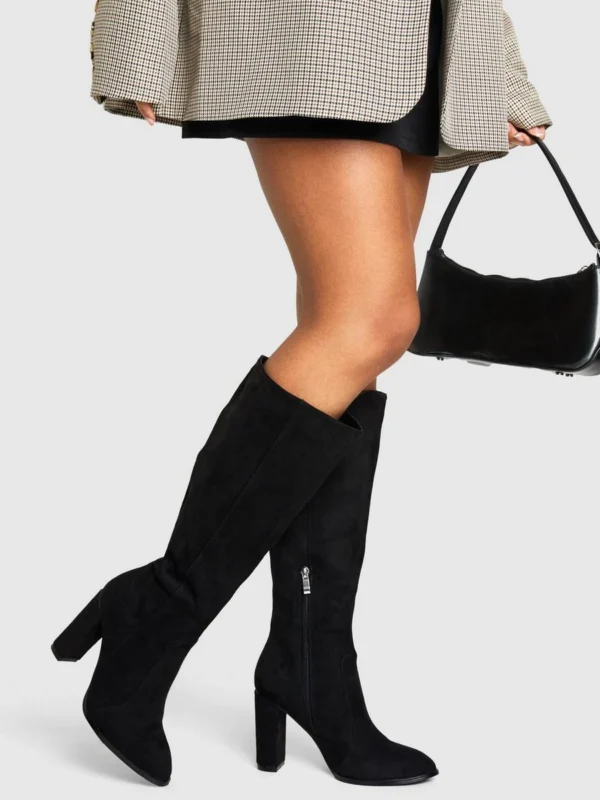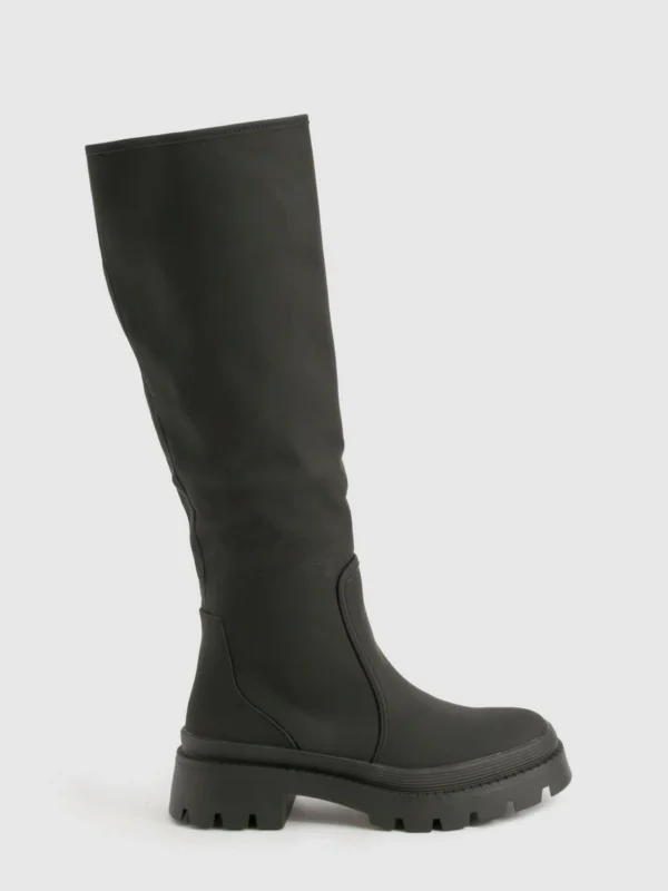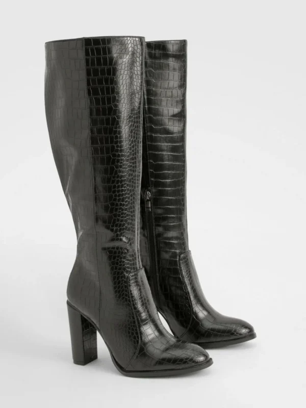 BOOHOO Round Toe Wooden Stack Heel Detail Knee High Boots