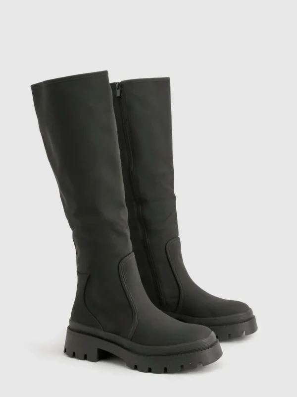 BOOHOO Ribbed Detail Chunky Chelsea Boots