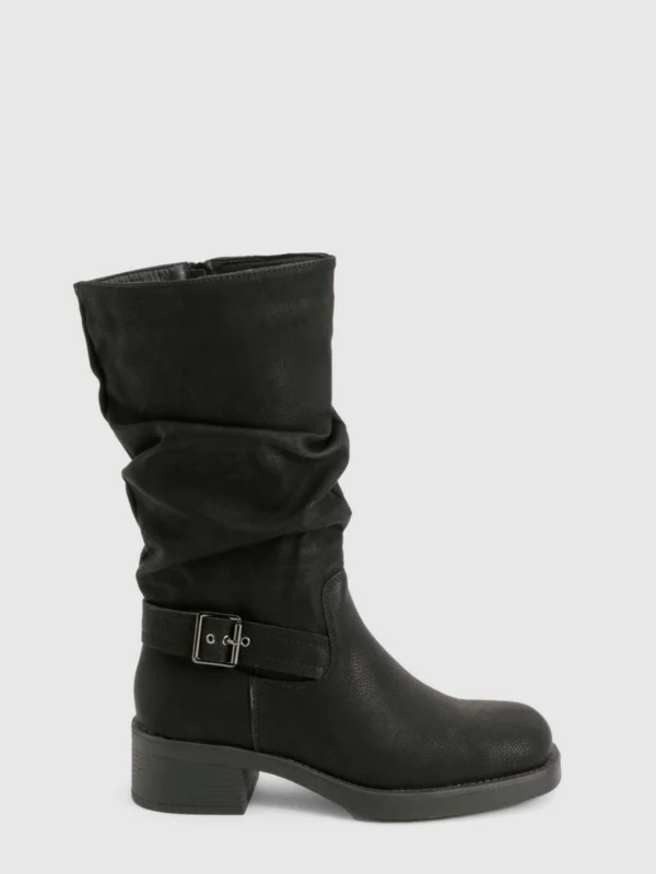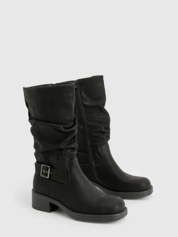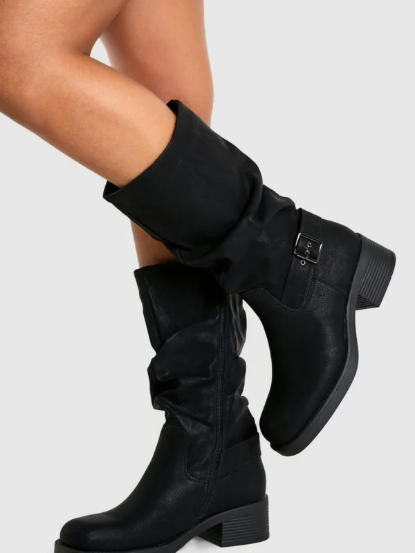 BOOHOO Ruched Slouch Buckle Detail Knee High Boots