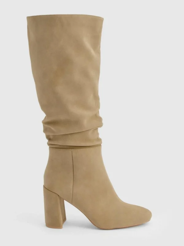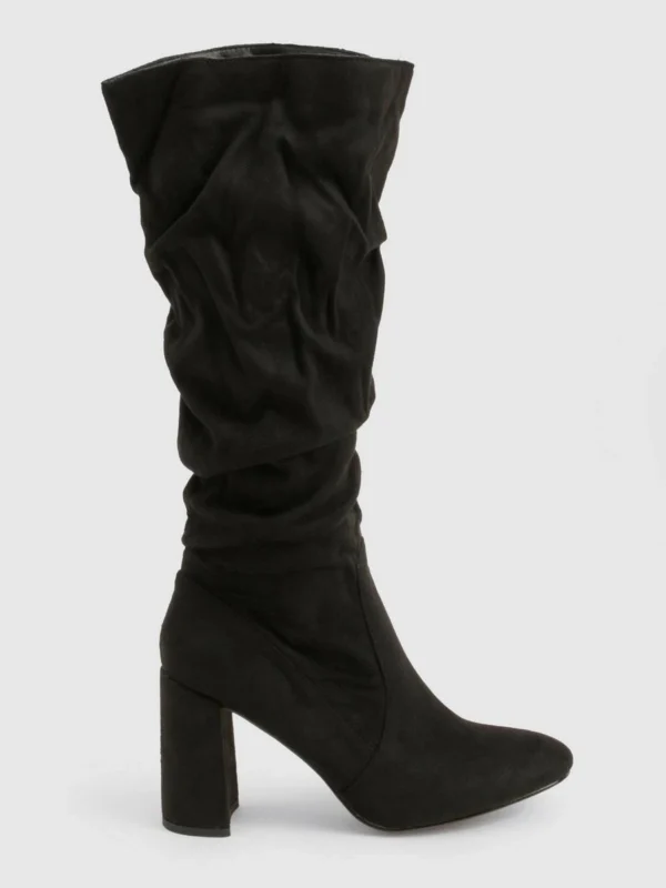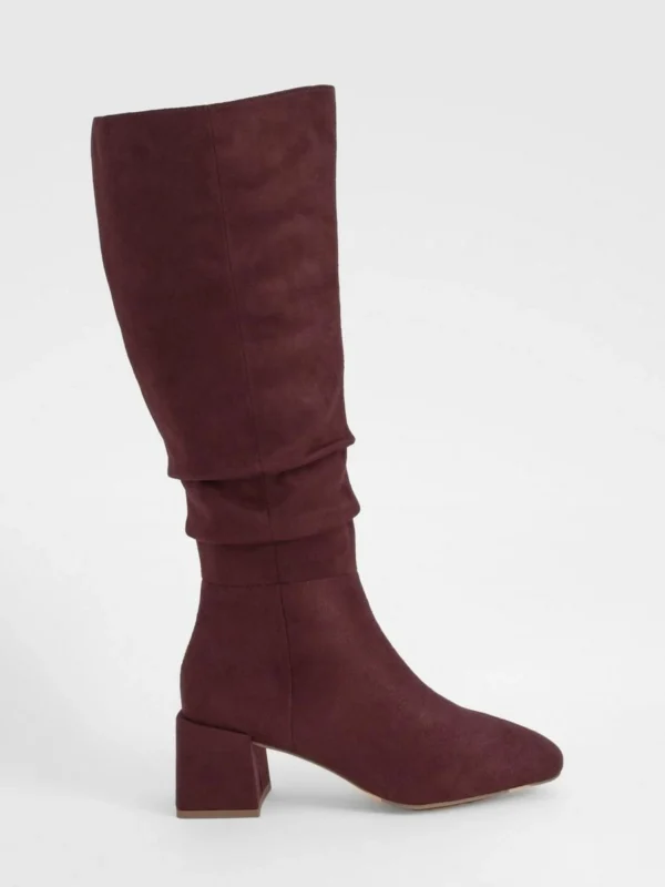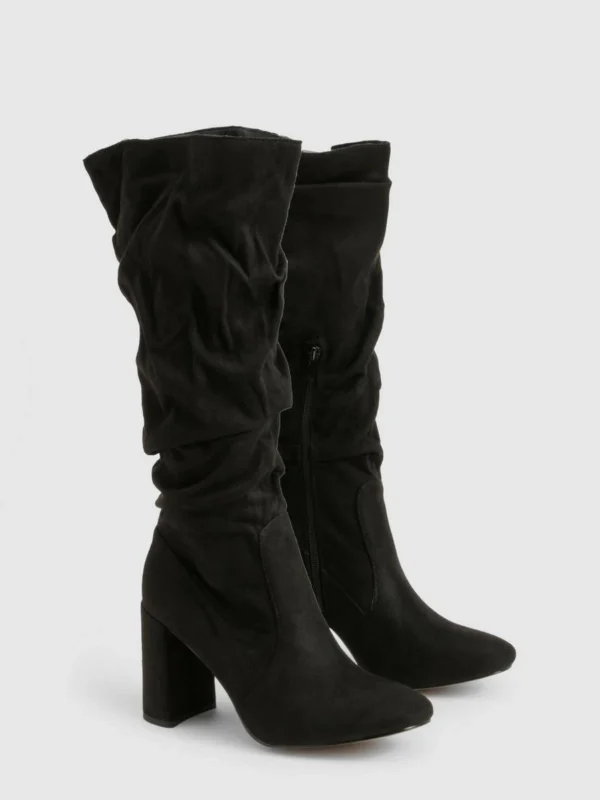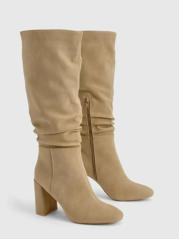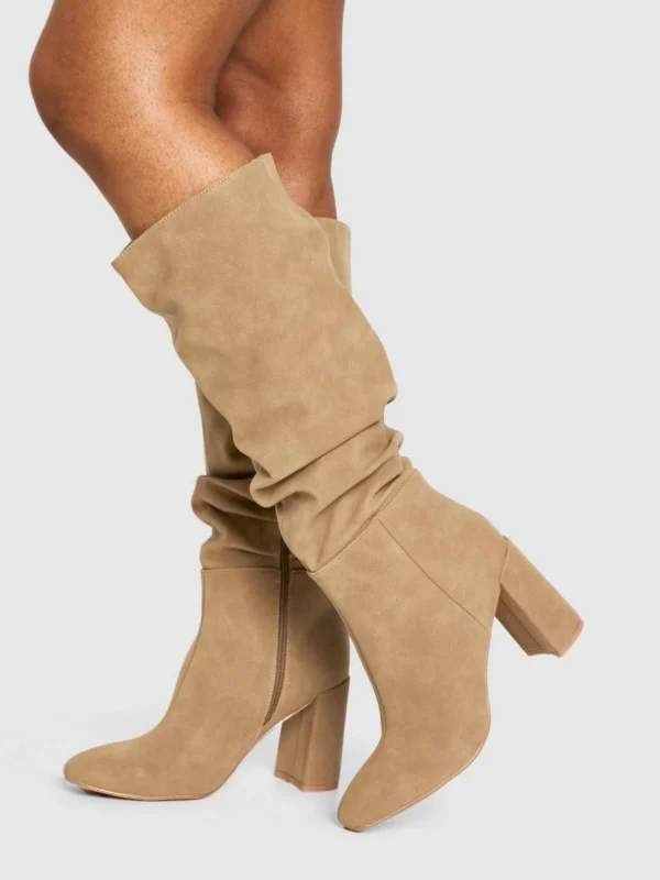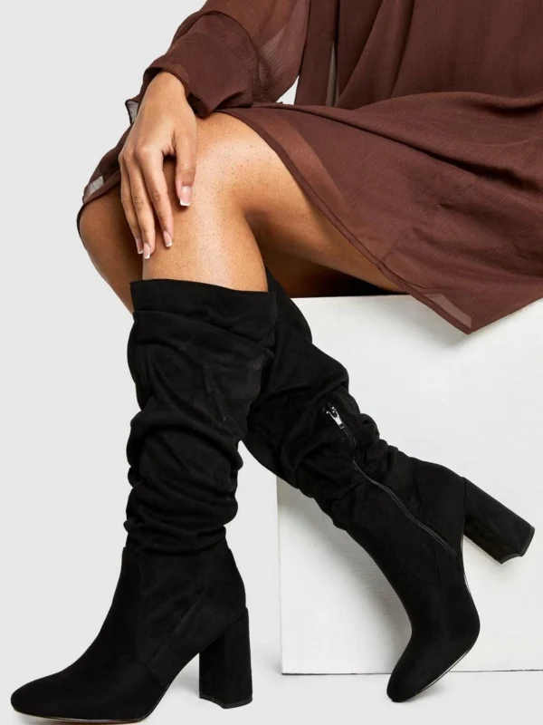 BOOHOO Ruched Slouch Block Heel Knee High Boots