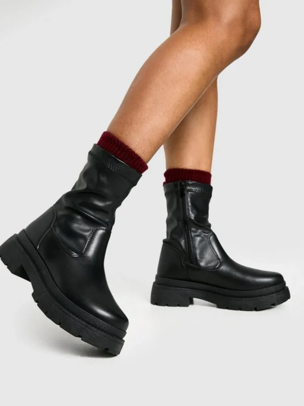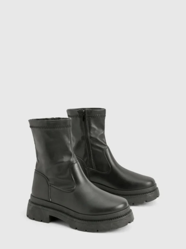 BOOHOO Sock Detail Chunky Ankle Boot