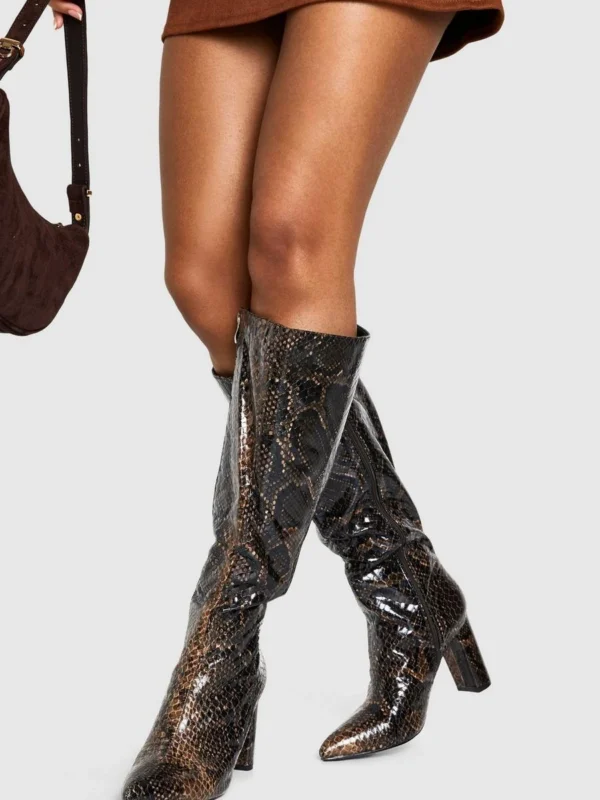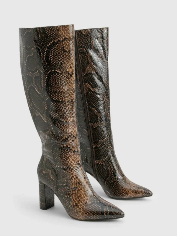 BOOHOO Snakeskin Pointed Toe Knee High Boots