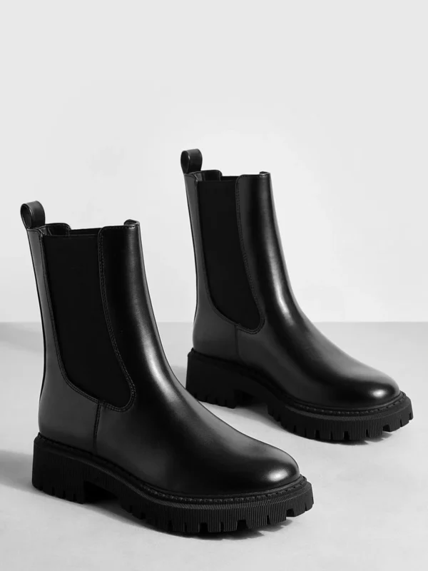BOOHOO Tab Detail Chunky Chelsea Boots