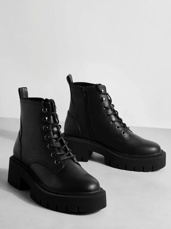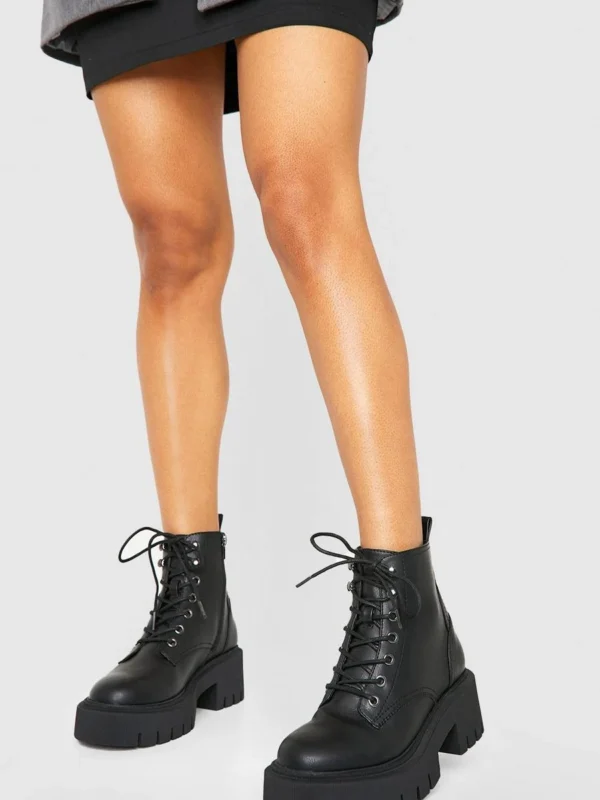 BOOHOO Tab Detail Chunky Lace Up Hiker Boots