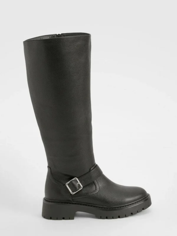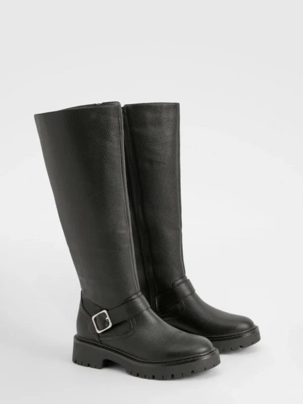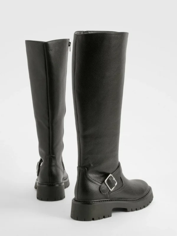 BOOHOO Textured Buckle Detail Chunky Knee High Boot