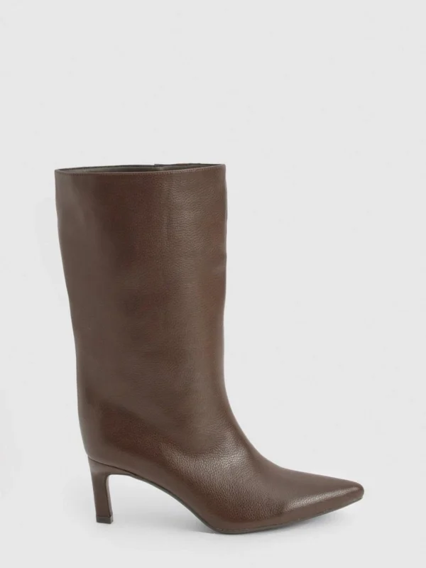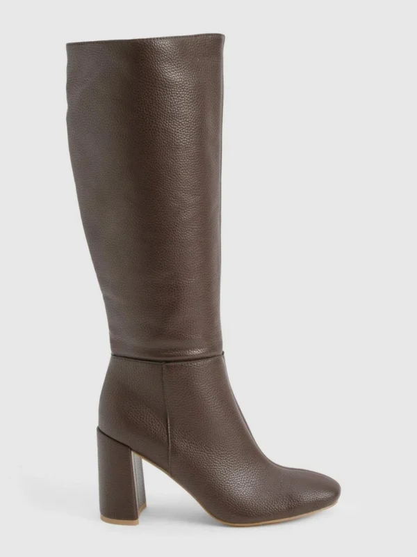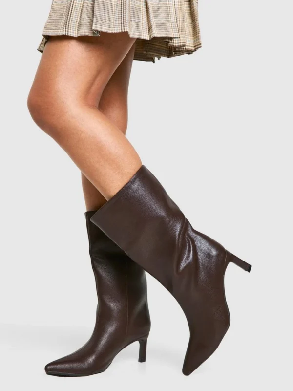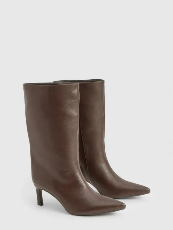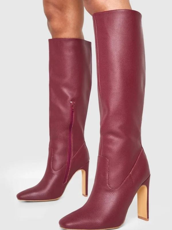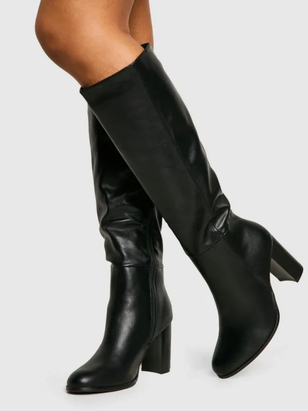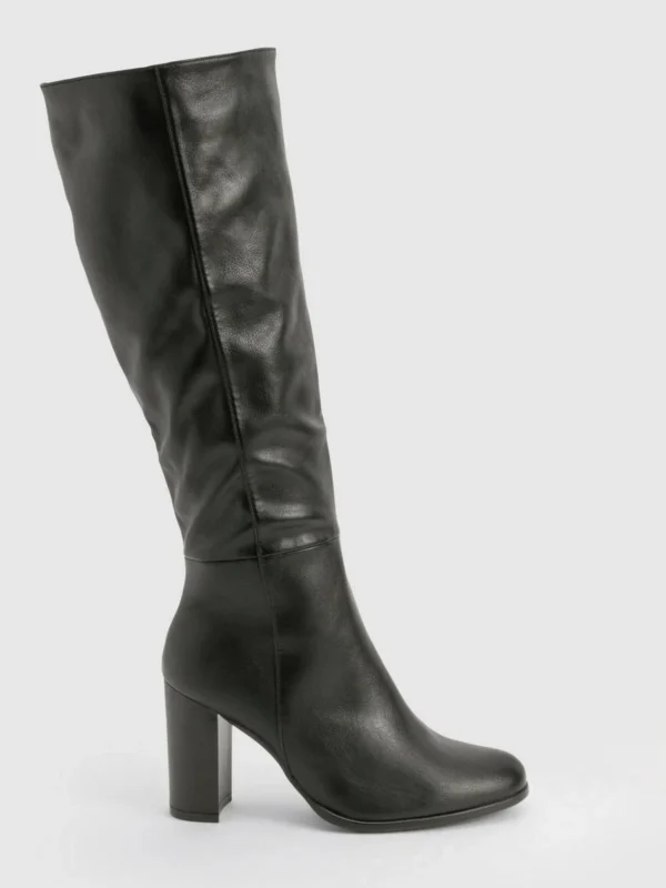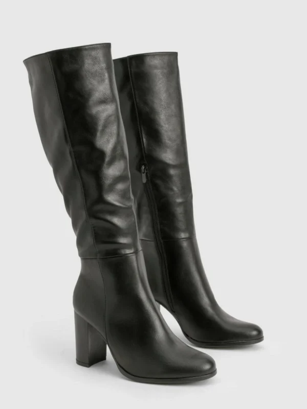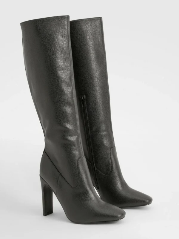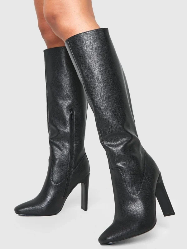 BOOHOO Textured Leather Look Column Calf Boot