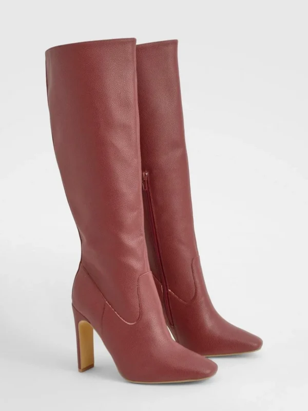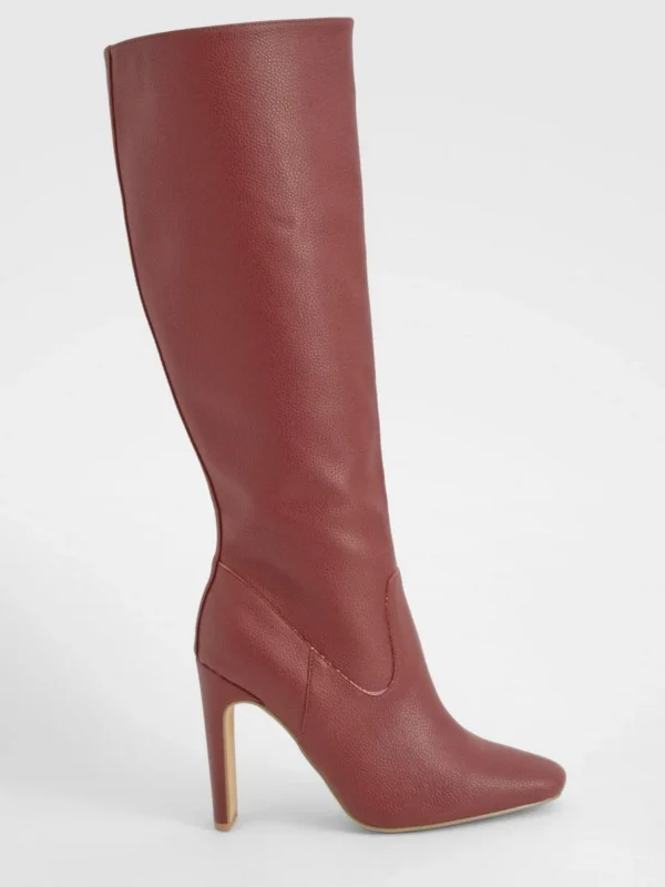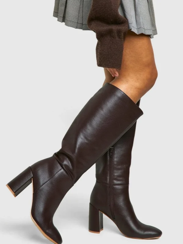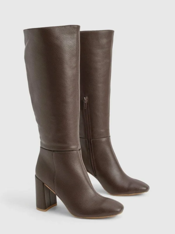 BOOHOO Textured Heeled Knee High Boot