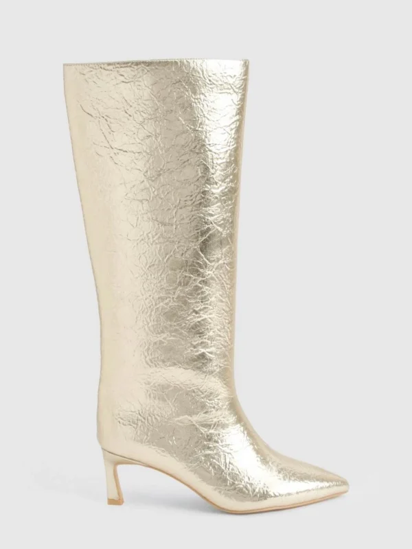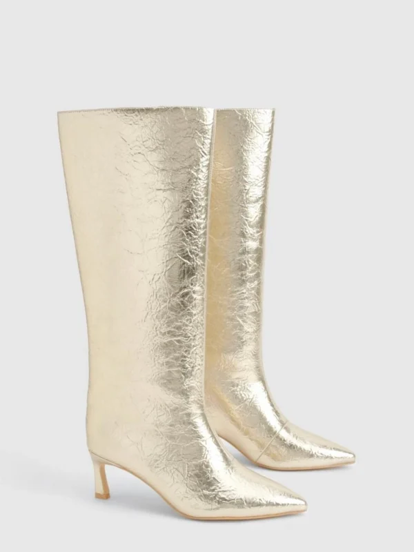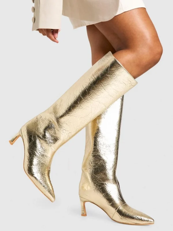 BOOHOO Textured Metallic Column Knee High Boots