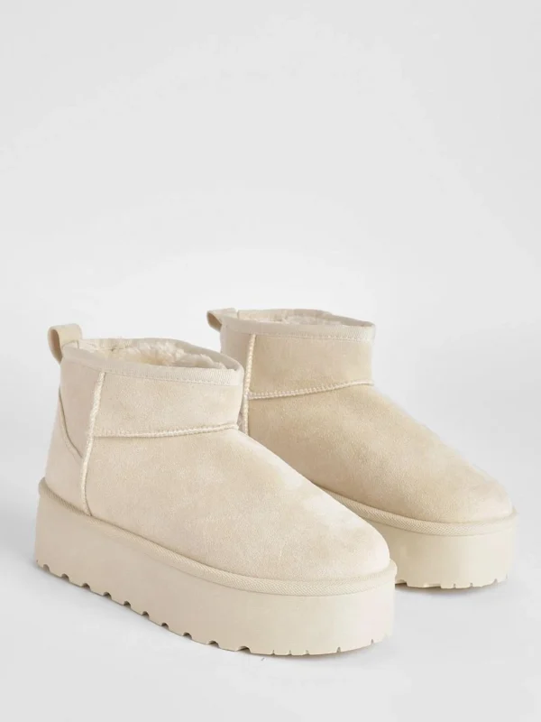 BOOHOO Ultra Mini Platform Faux Fur Lined Boots