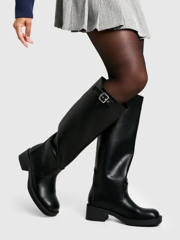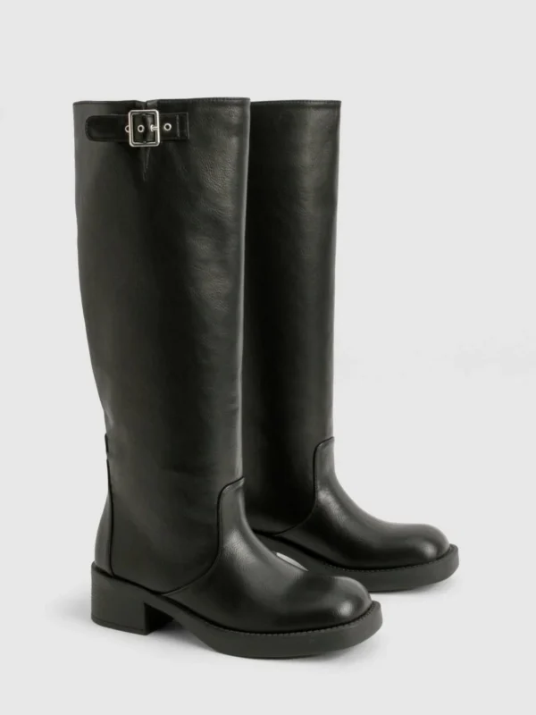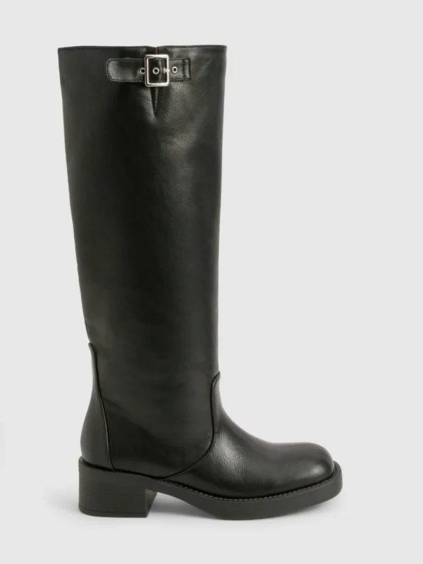 BOOHOO Vintage Look Buckle Detail Knee High Boot
