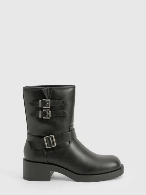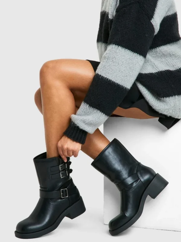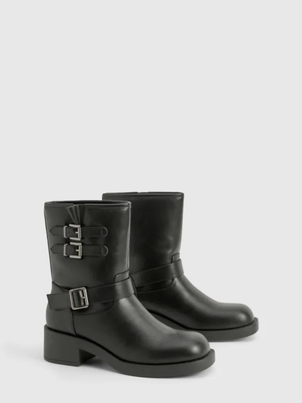 BOOHOO Vintage Style Buckle Detail Biker Boot