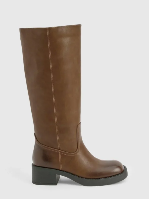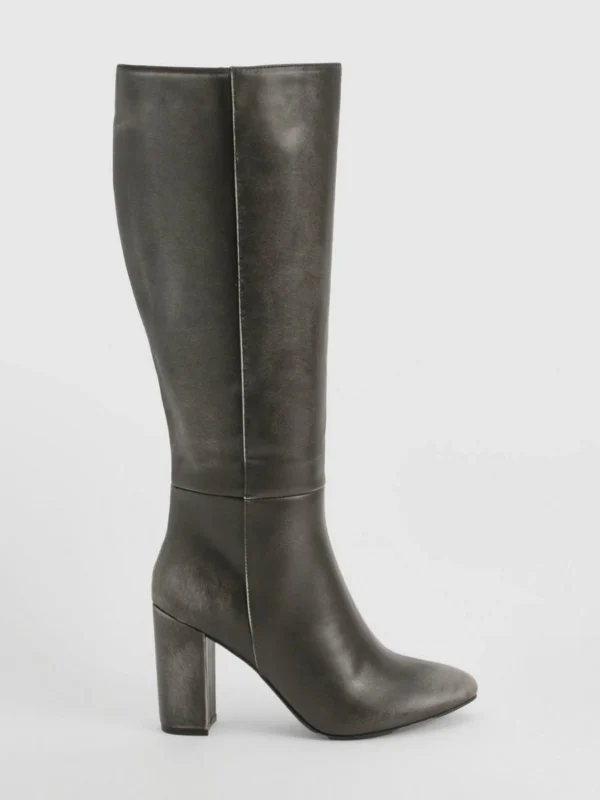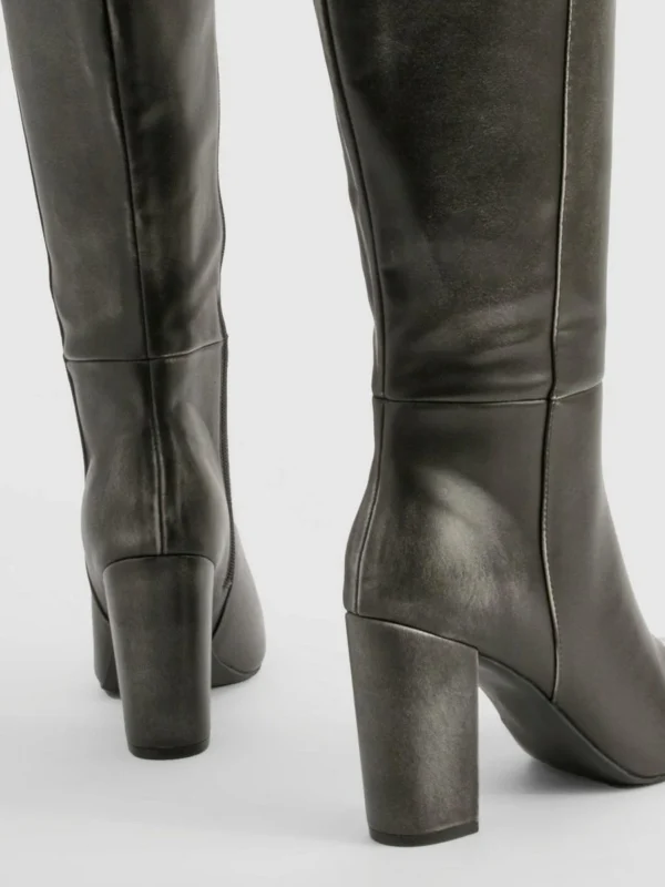 BOOHOO Vintage Look Burnished Toe Column Knee High Boot
