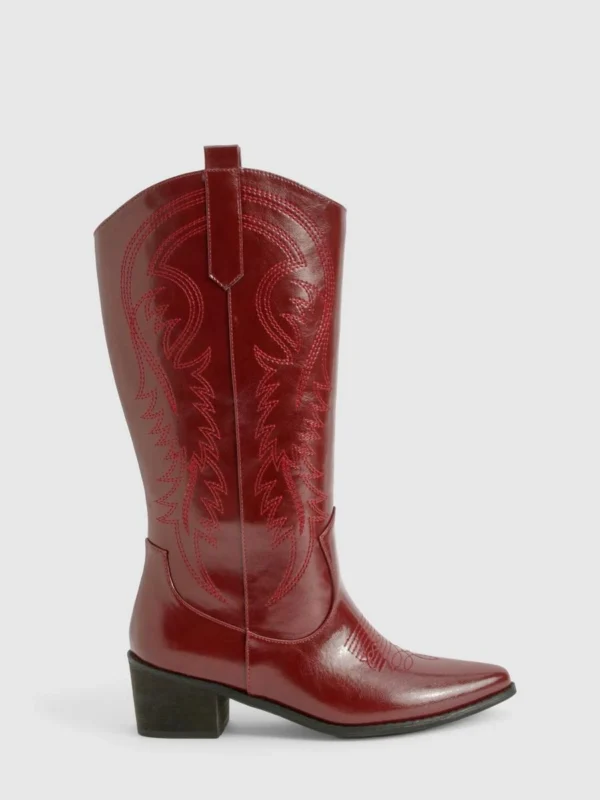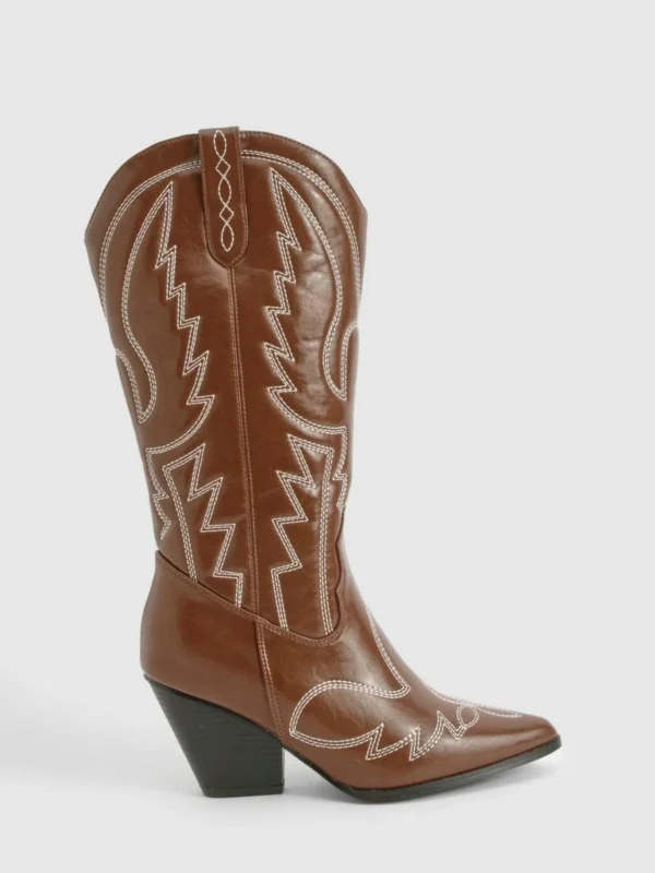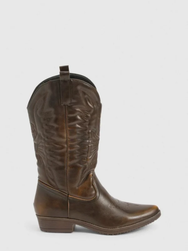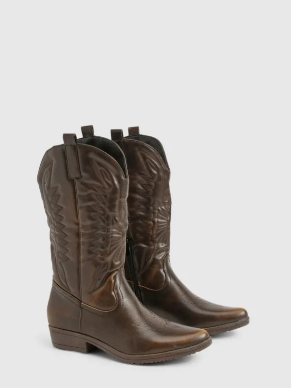 BOOHOO Vintage Look Calf High Western Cowboy Boots