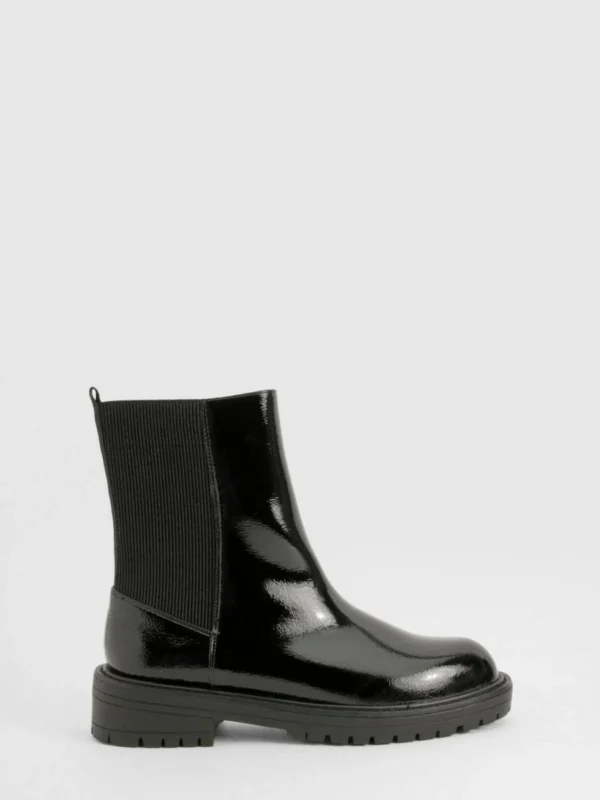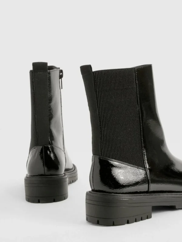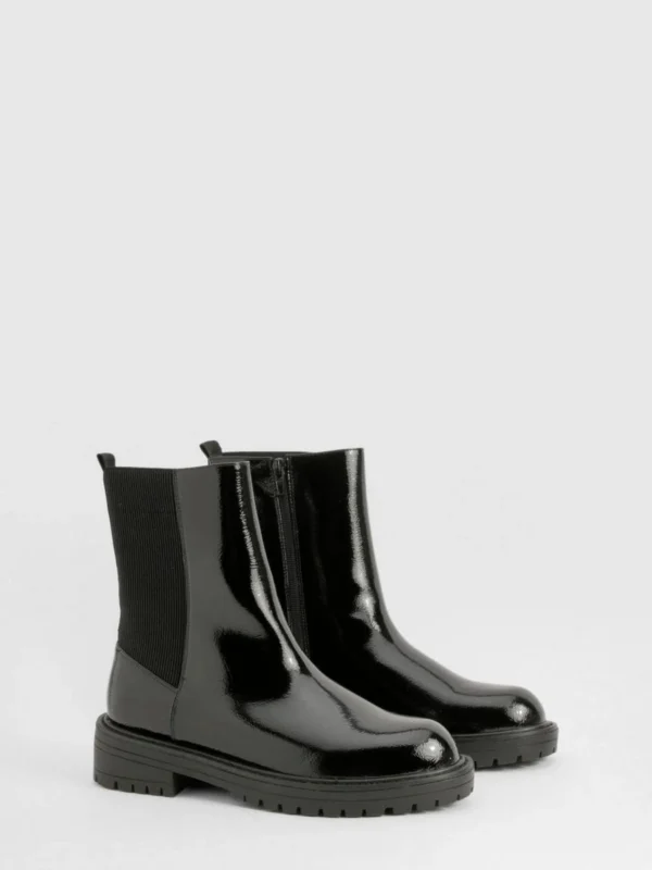 BOOHOO Wide Fit Ankle Detail Textured Patent Chelsea Boots