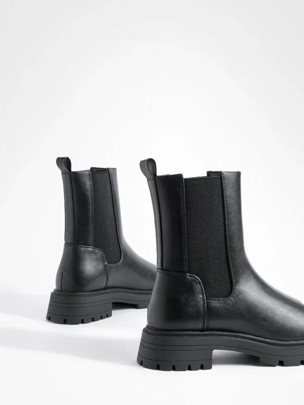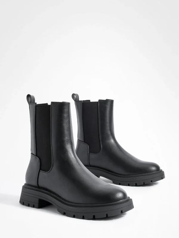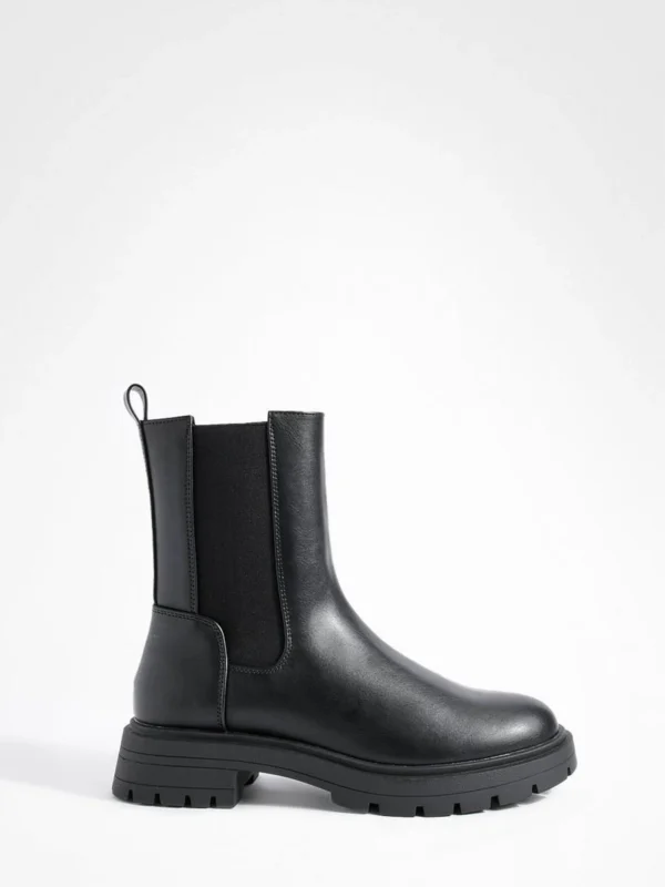 BOOHOO Wide Fit Ankle Detail Pu Chelsea Boots