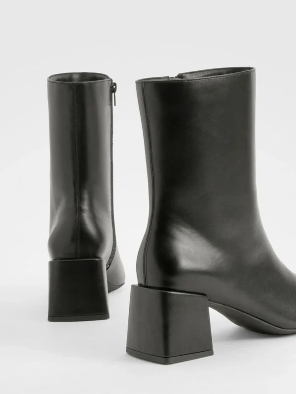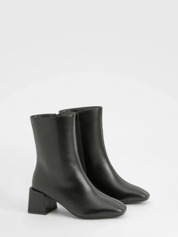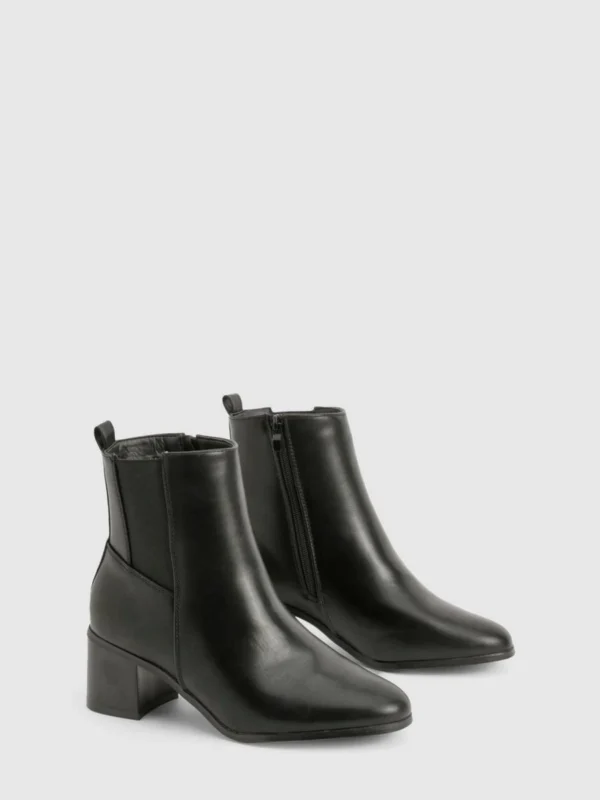 BOOHOO Wide Fit Basic Low Block Heel Shoe Boot