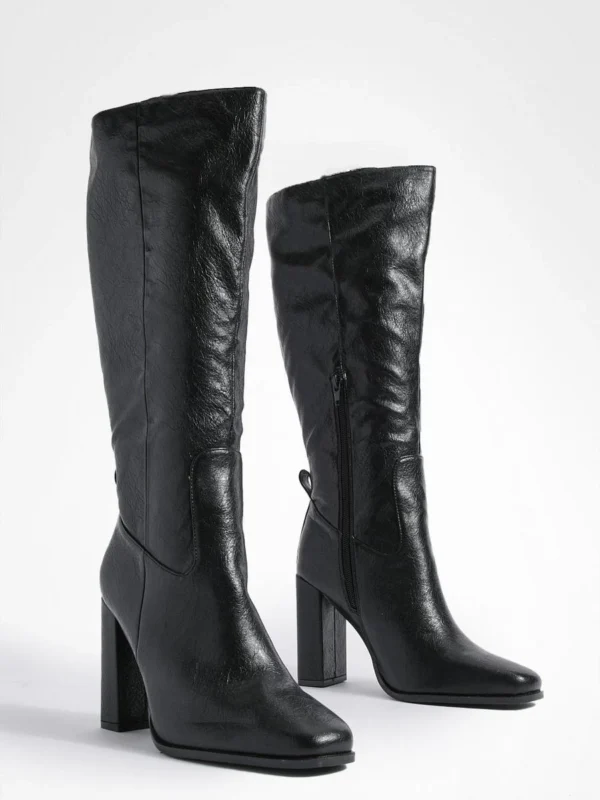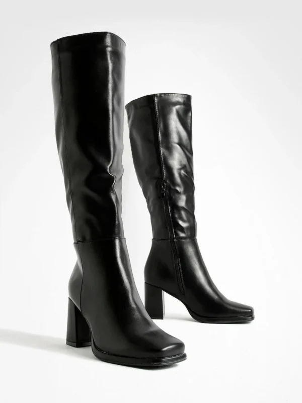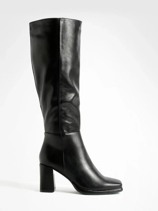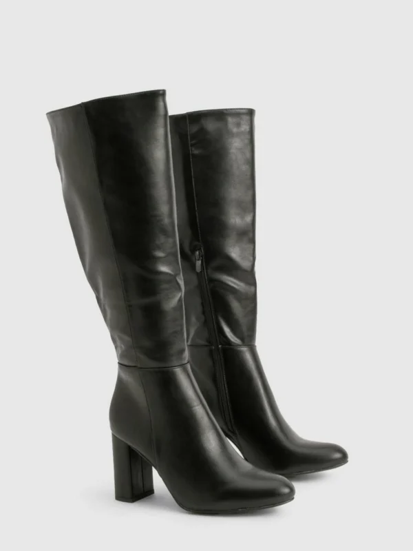 BOOHOO Wide Fit Block Heel Knee High Boots