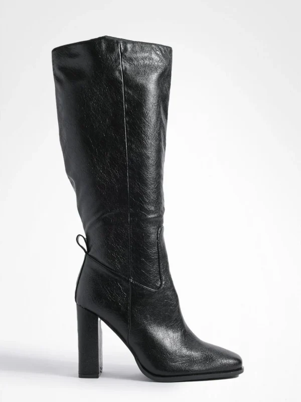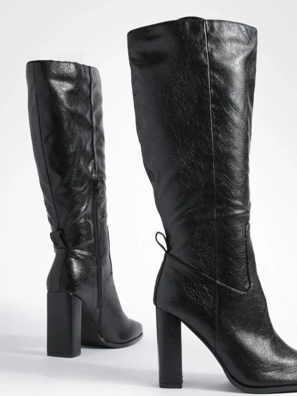 BOOHOO Wide Fit Block Heel High Shine Knee High Boots