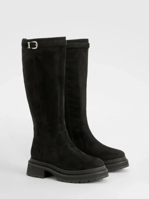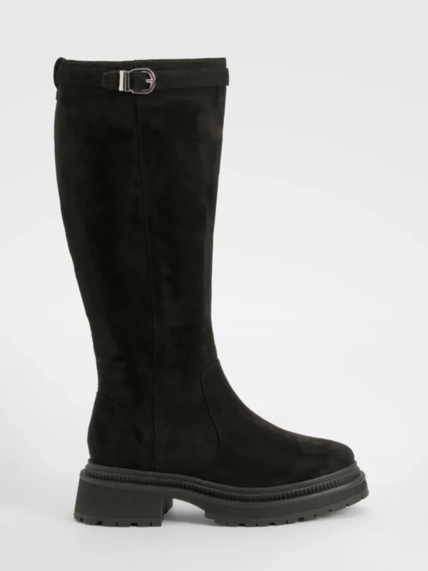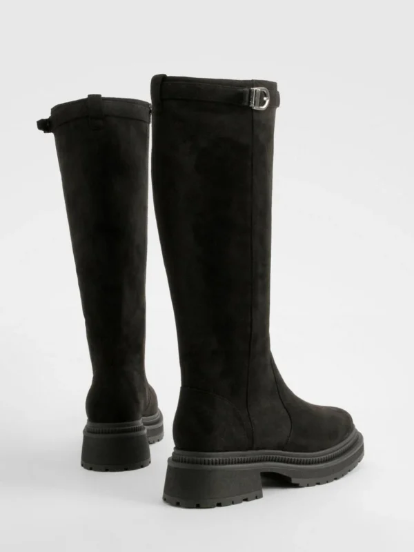 BOOHOO Wide Fit Buckle Detail Chunky Knee High Boots
