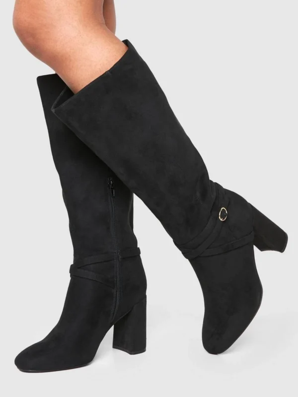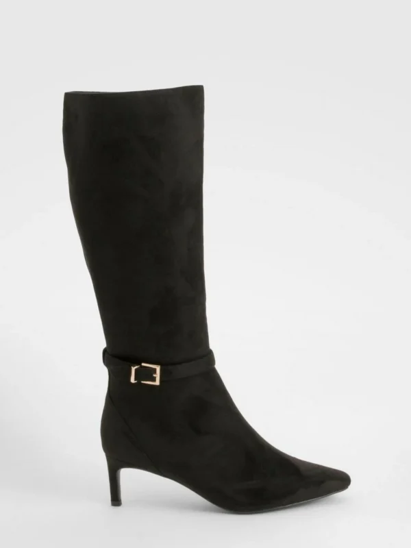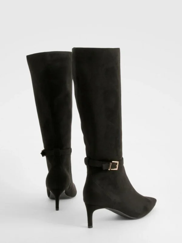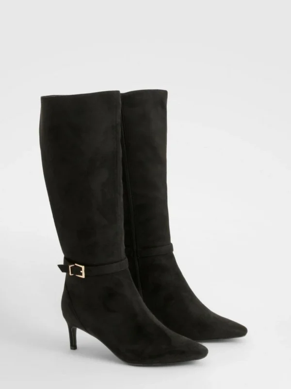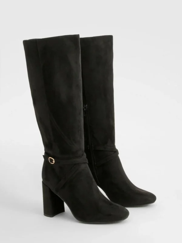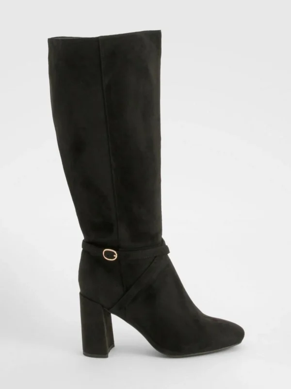 BOOHOO Wide Fit Buckle Detail Heeled Knee High Boots